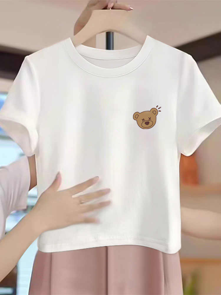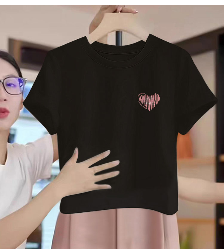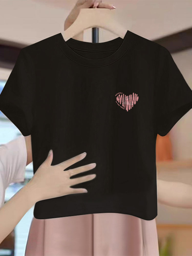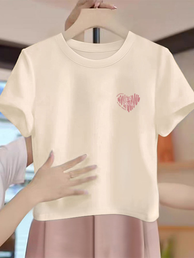 Women's Short Pure Cotton Short Sleeve T-Shirt Women's New Arrival Summer Slimming Heart Printing Tops Ins
