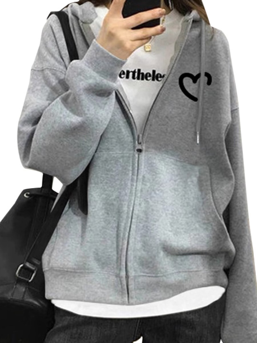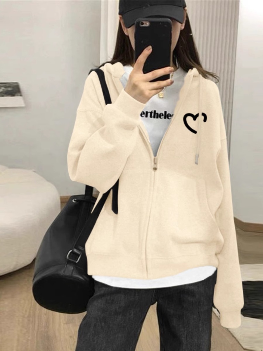 Women's Sweater Outwear Women's Spring and Autumn Zipper Korean Style Idle Style Thick Hooded Gray Cardigan New Arrival Autumn Tops