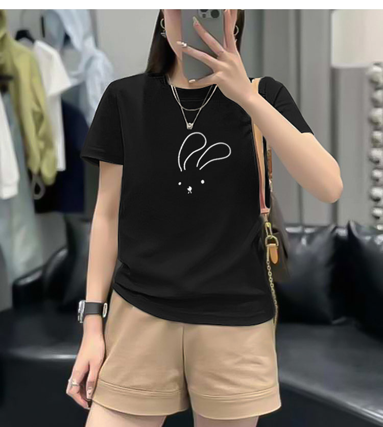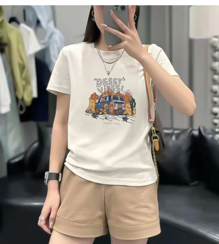 Women's Three-Line Short-Sleeved T-shirt with Shoulder T-Shirt 2025 New Arrival Summer Stylish American-Style Unique Tops