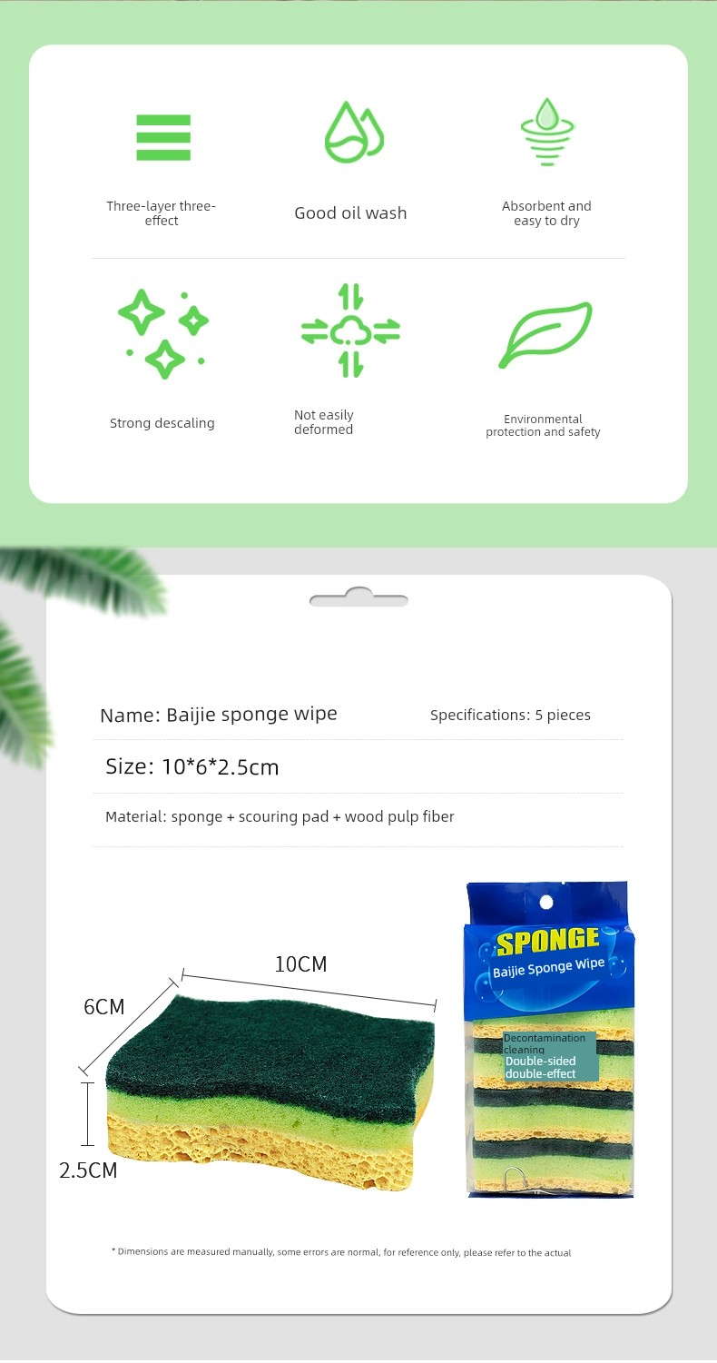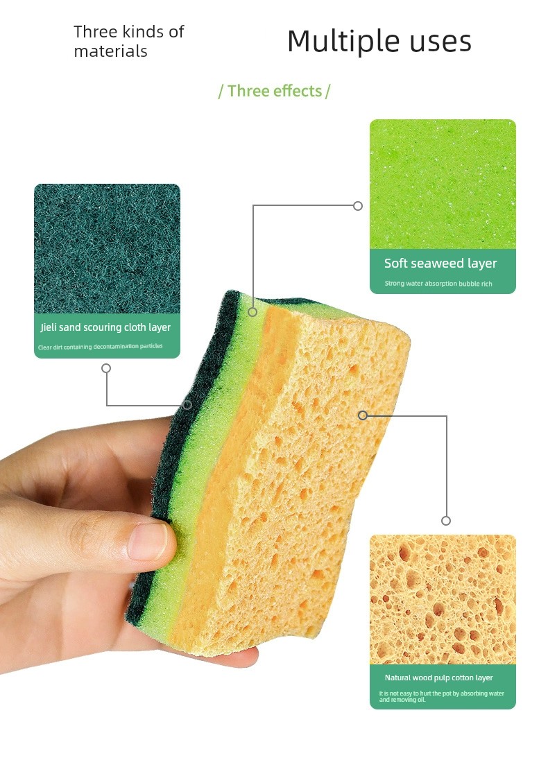 Wood Pulp Dishwashing Spong Mop Bowl Brushing Appliance Cleaning Thickened Non-Stick Oil Kitchen Special Absorbent Durable Scouring Pad