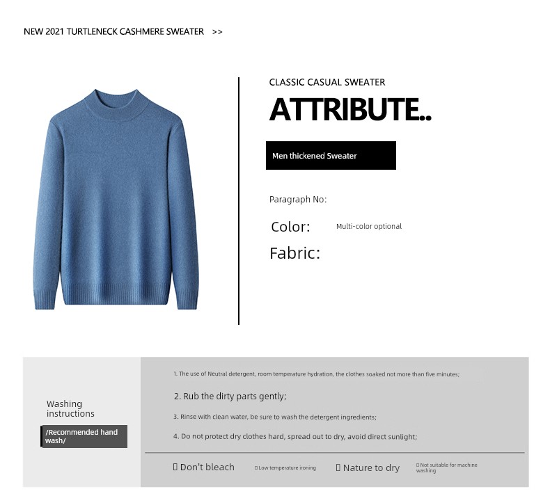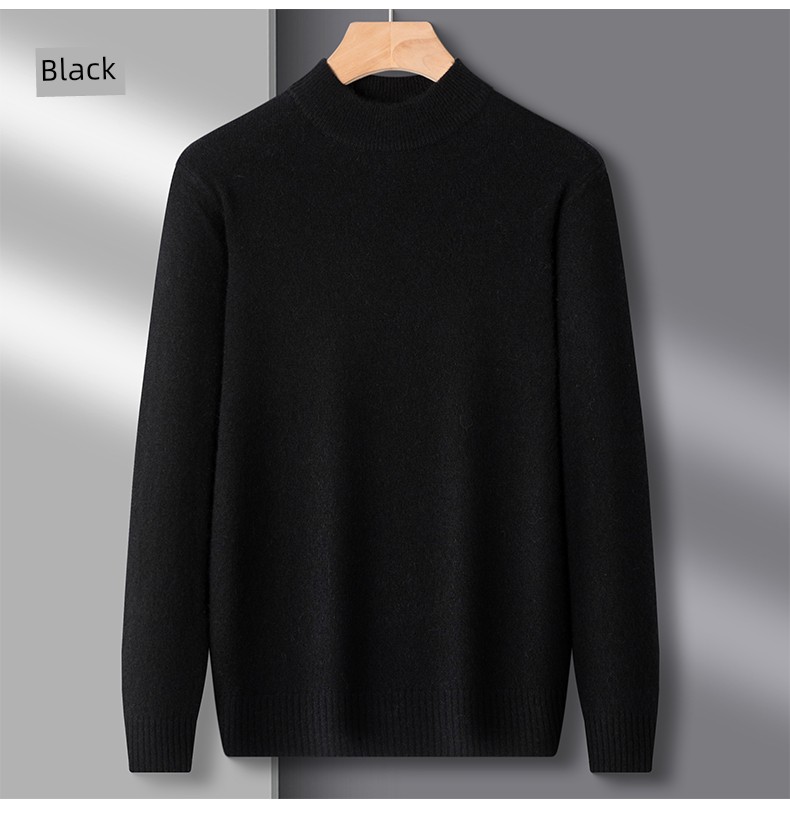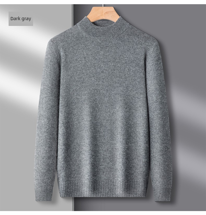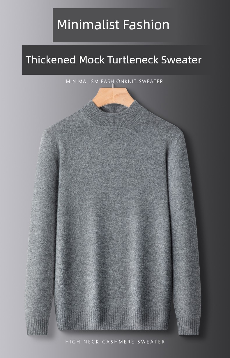 Woodpecker 100% Pure Cashmere Men Thickened Heattech Mock Neck Sweater Middle-Aged Autumn and Winter Base Cardigan