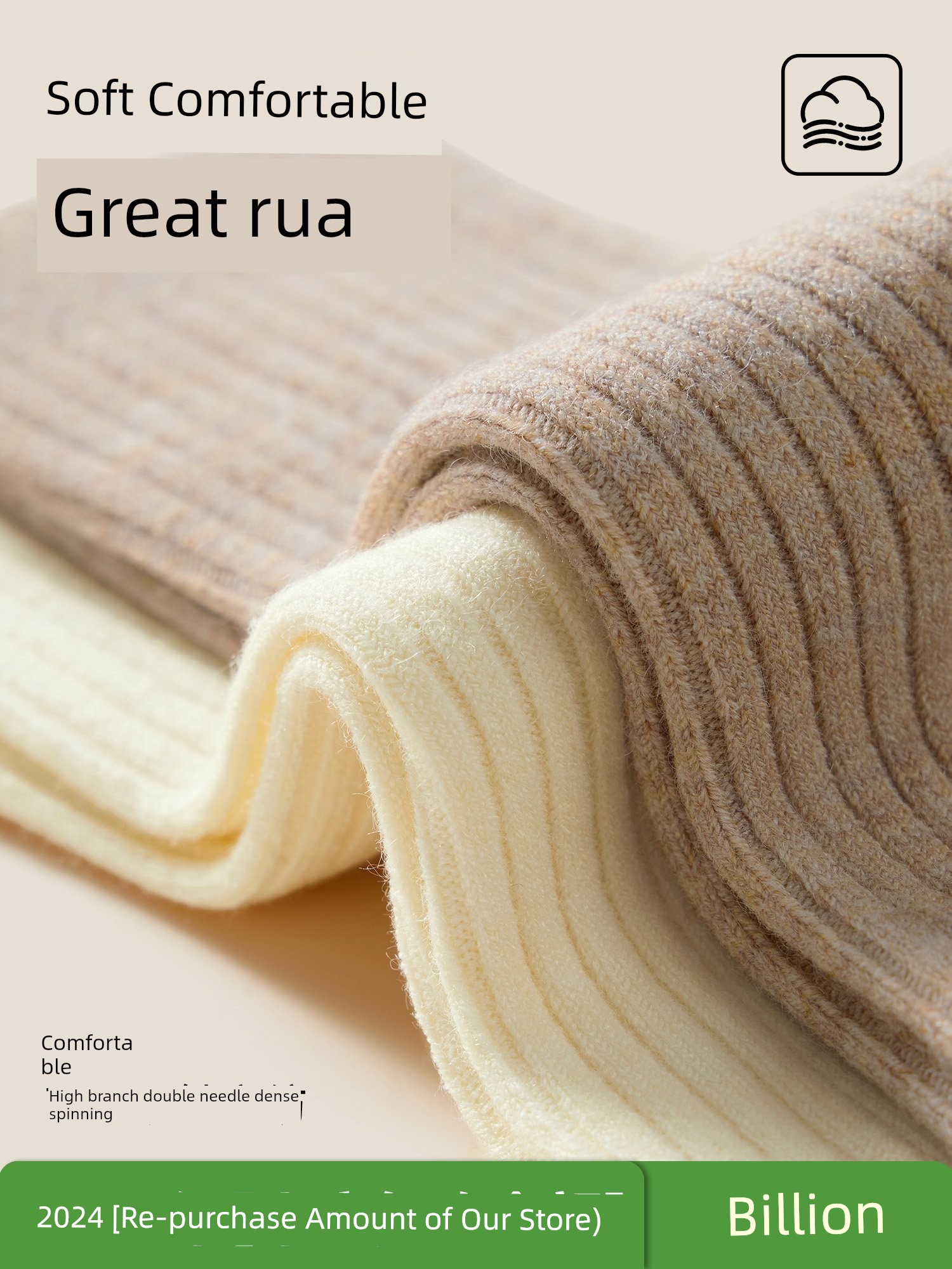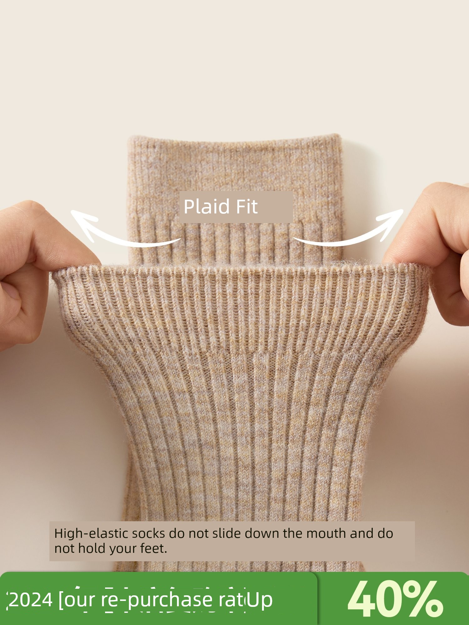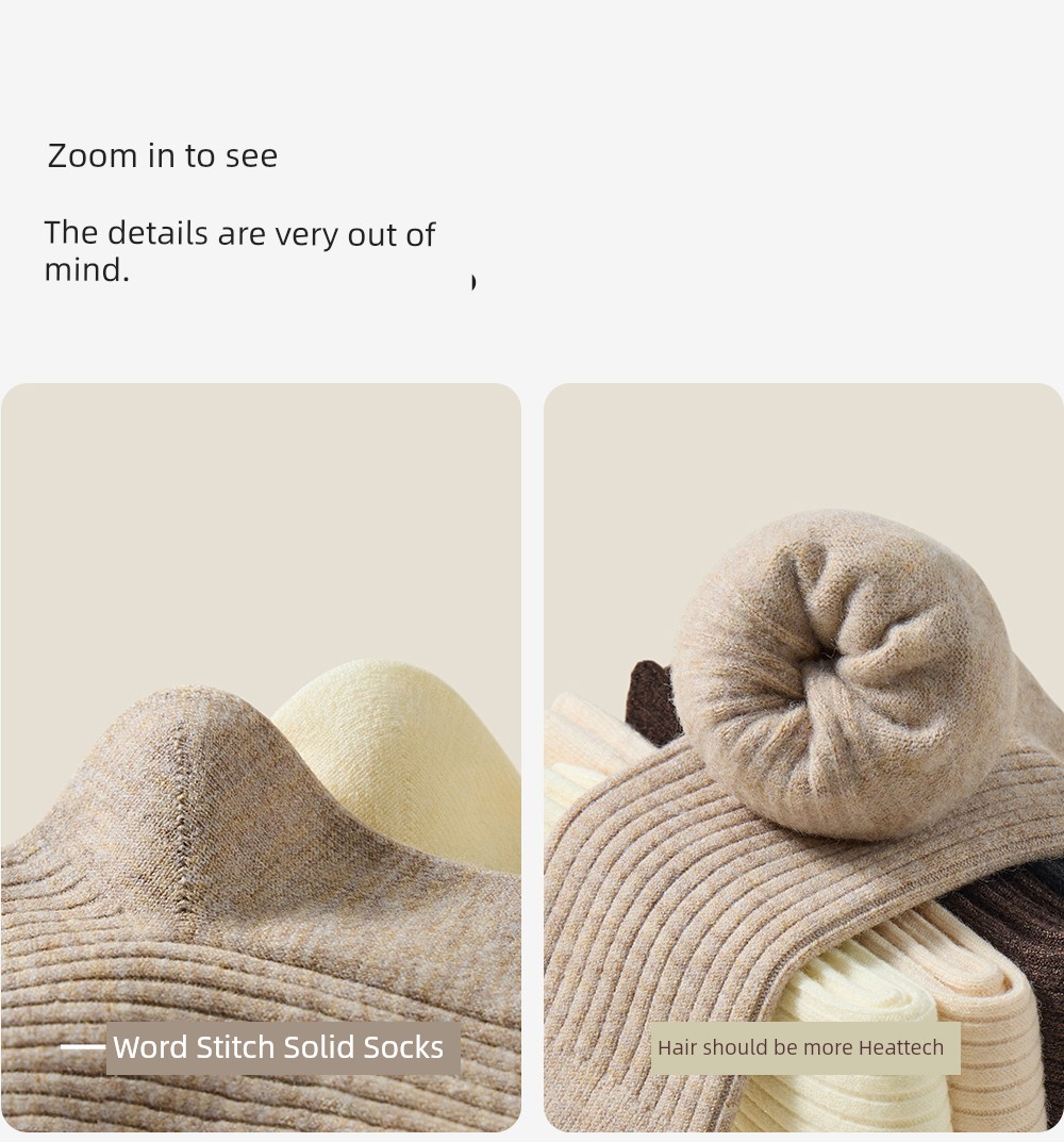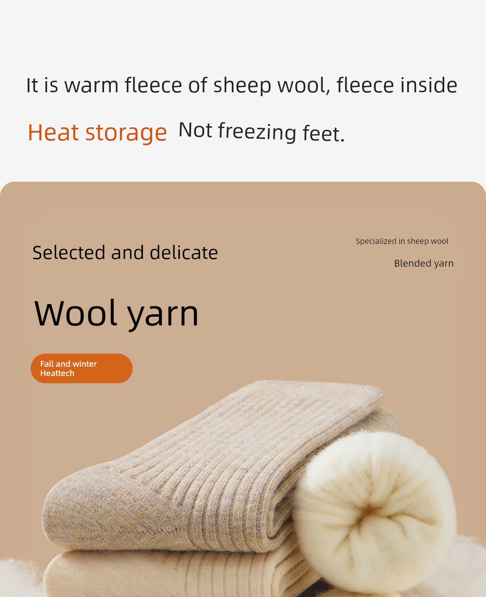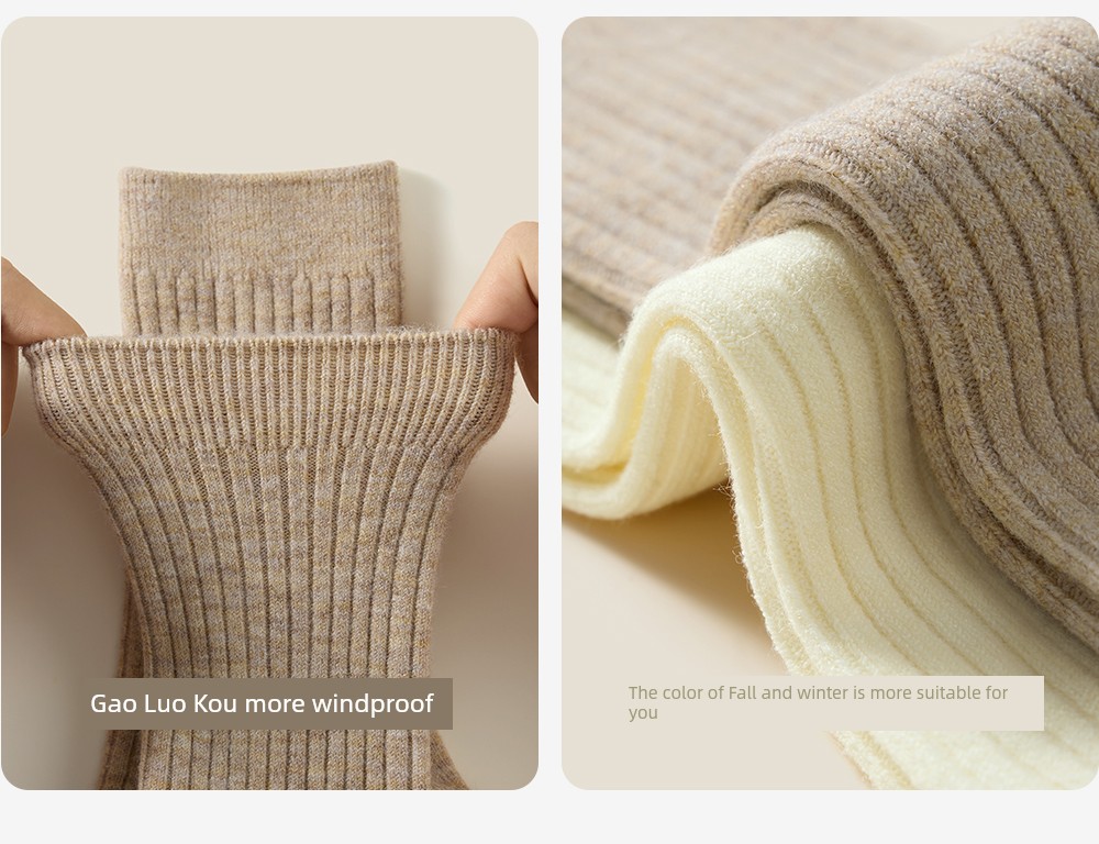 Wool Socks Women's Mid-Calf Length Sock Autumn and Winter Fleece Lined Padded Warm Keeping Cashmere Long Socks 7A Antibacterial Deodorizing Filter Bunching Socks