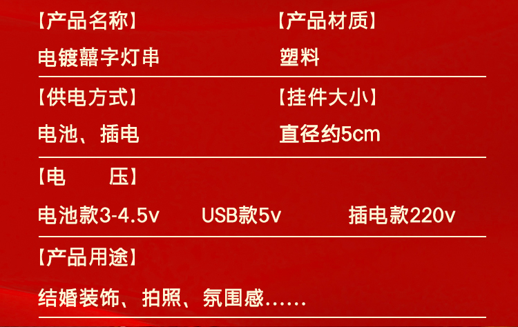 Xi Character Lighting Chain Wedding Room Decoration Led Small Colored Lights Lighting Chain String Ambience Light Wedding Supplies Double Happiness Lantern String