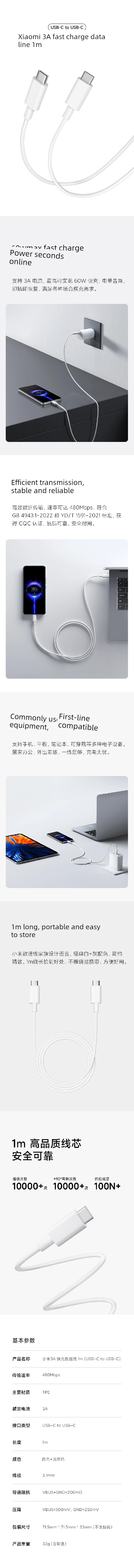 Xiaomi 3A Fast Charge Data Cable 1M (USB-C to USB-C)