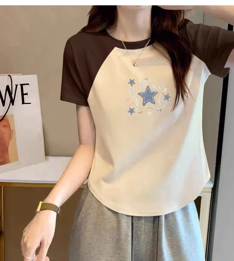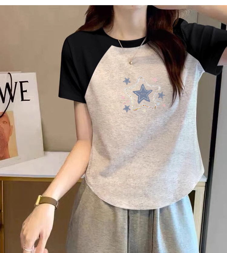 XINGX Print Shoulder Short Sleeve T-Shirt Women 2025 New Arrival Summer Slimming Inner Wear Pure Cotton Stylish Short Tops