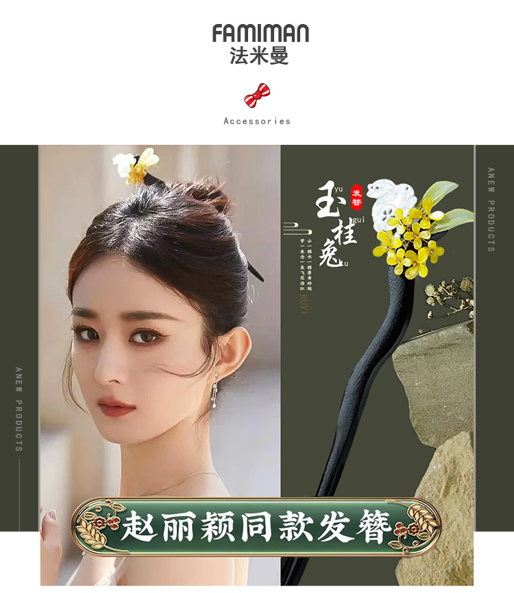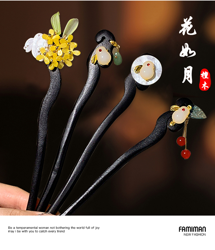 Zhao Liying Same Style Antiquity Hair Clasp Women's Fancy Ebony Quality Hairpin New Chinese Style Minimalist Modern Hairpin Headdress