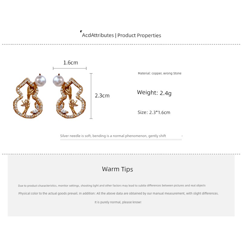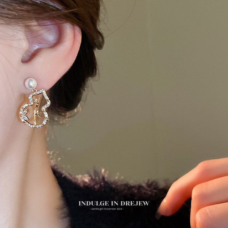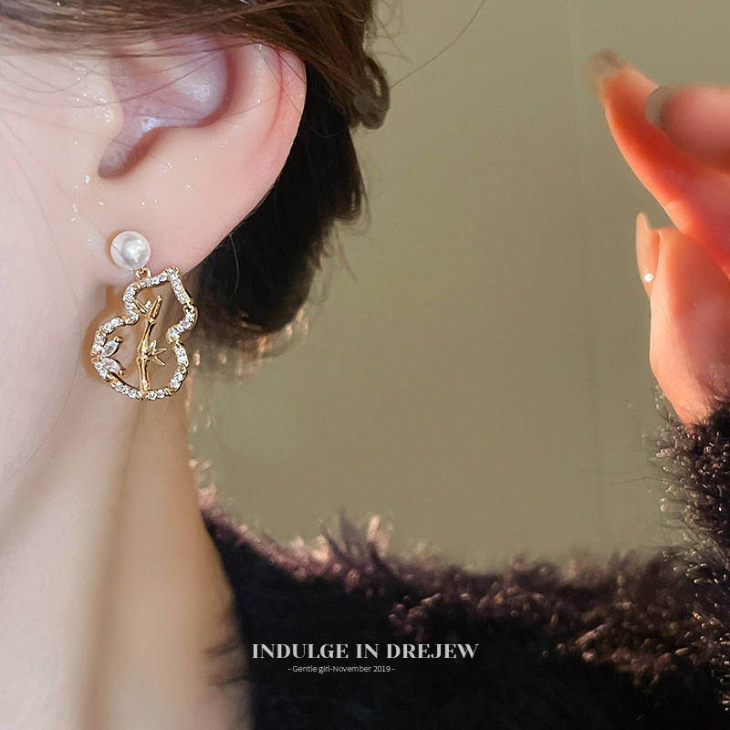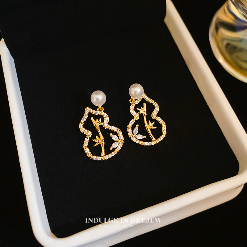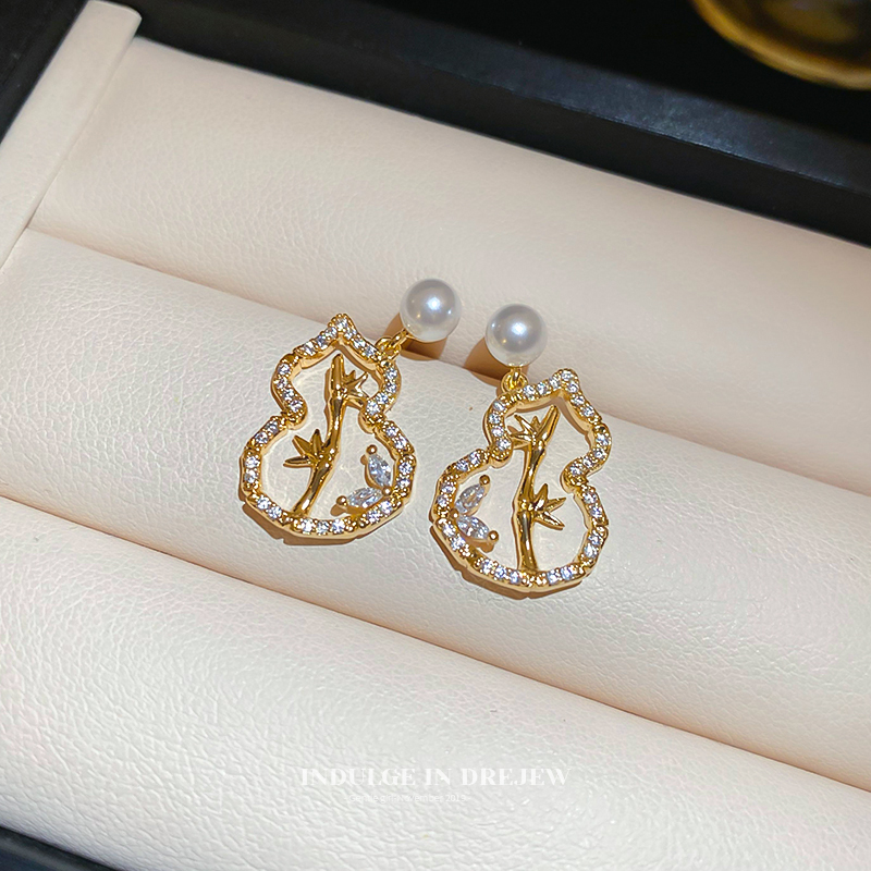 Zircon Gourd Pearl Stud Earrings for Women Niche Design Elegant Unique Earrings Accessible Luxury Fancy Golden Earrings