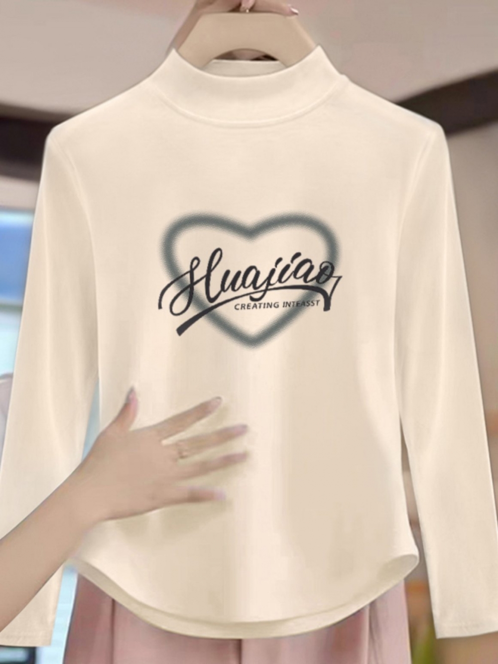 Европейские Товары Дралоновая Футболка со Средним Воротником и Длинными Рукавами Женская Нижняя Рубашка 2025 Осень и Зима Новое Поступление Полугольф Большого Размера Верхняя Одежда с Длинными Рукавами