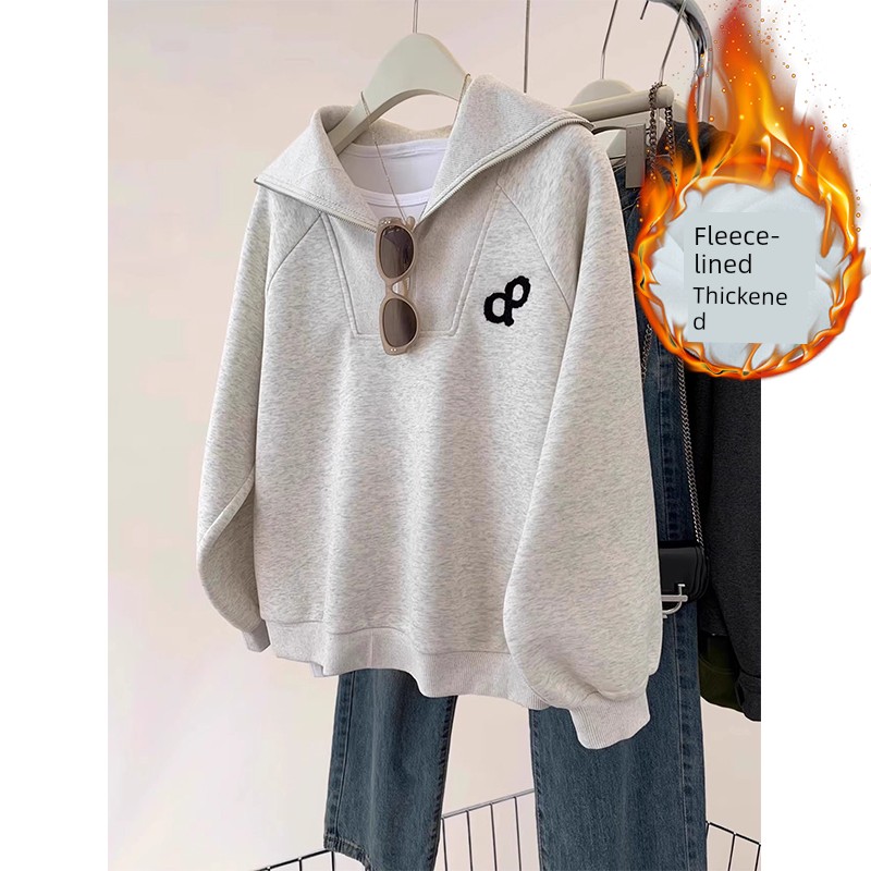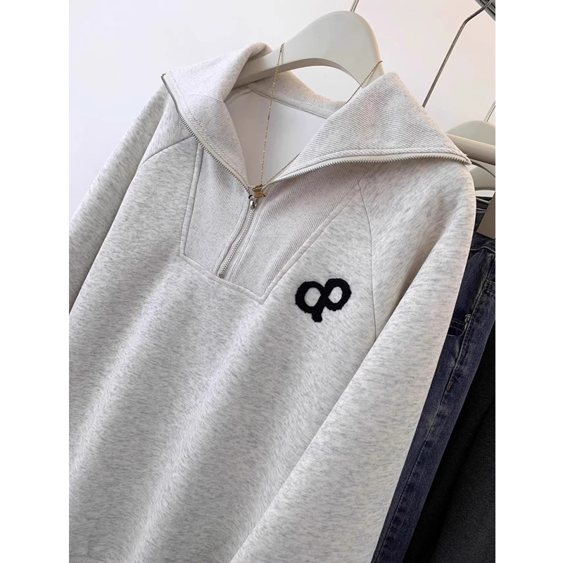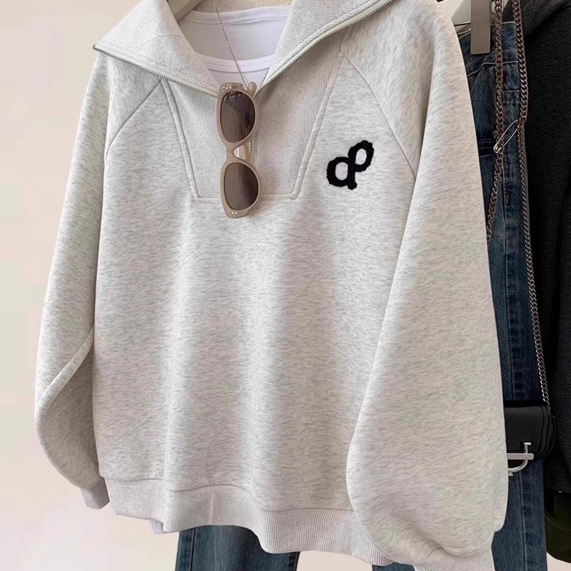 Новая женская толстовка-поло с вышивкой и молнией на половину, осень/зима, свободная, универсальная