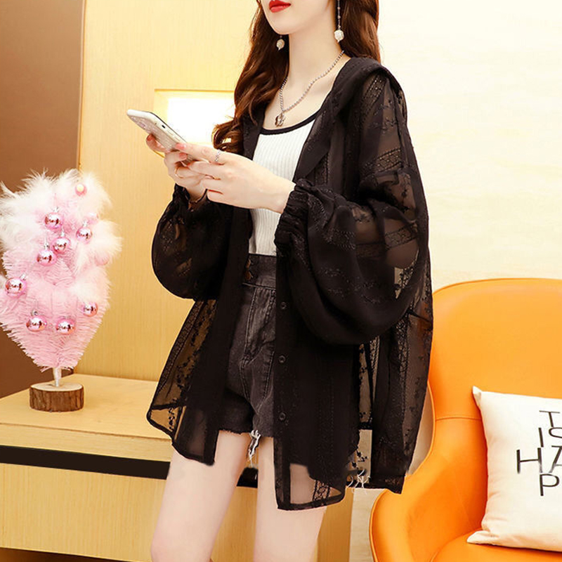 Одежда для защиты от солнца весом 1,00 кг-150,00 кг для женщин, кардиган, тонкая верхняя одежда, новинка лета 2024, свободный шифоновый капюшон для защиты от солнца