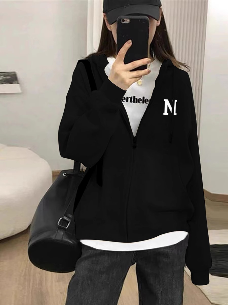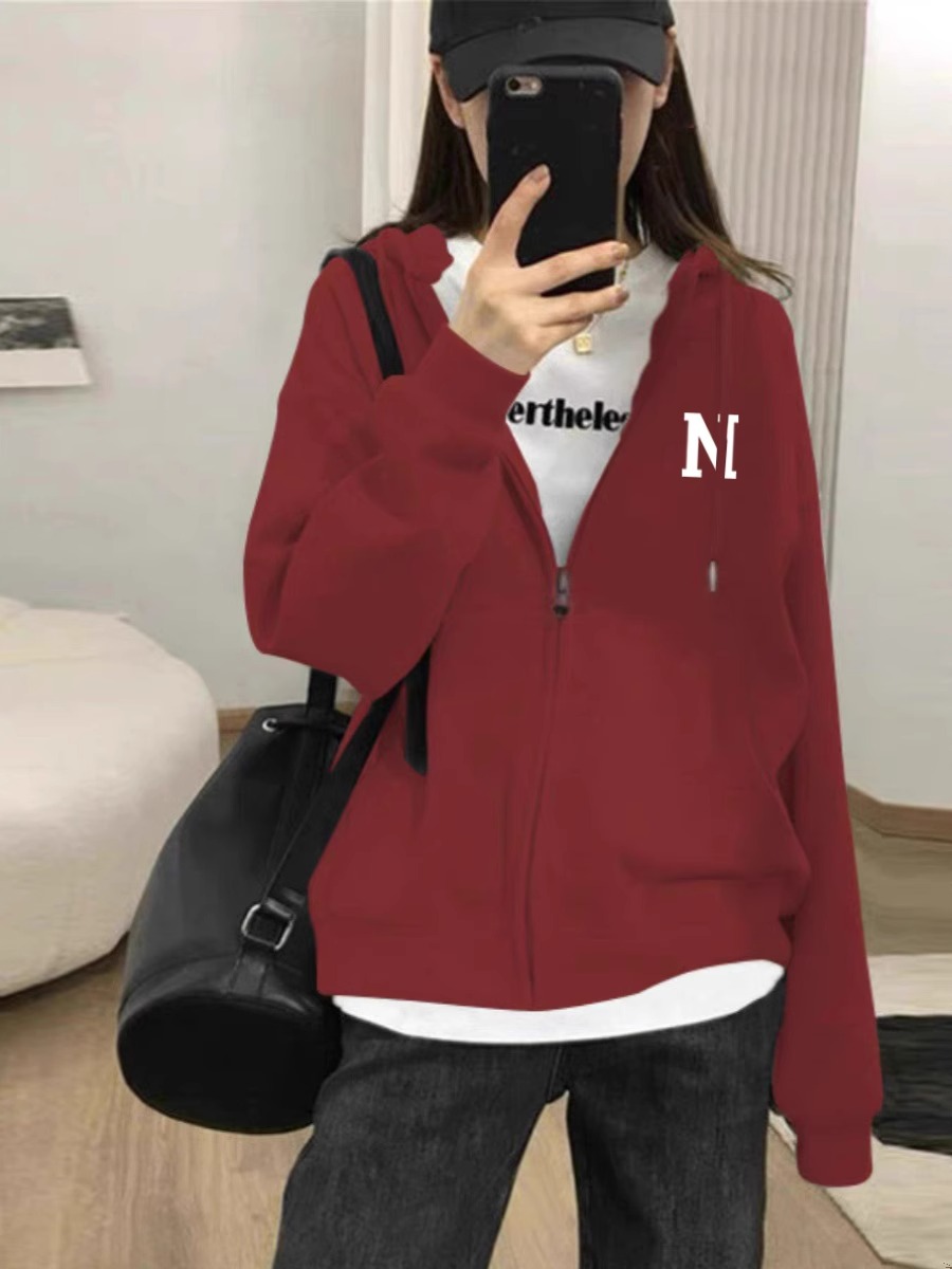 2025 Серый весенний-осенний свободный кардиган с капюшоном на молнии, женский, с флисовой подкладкой, американский, модный, супер красивый кардиган, верхняя одежда