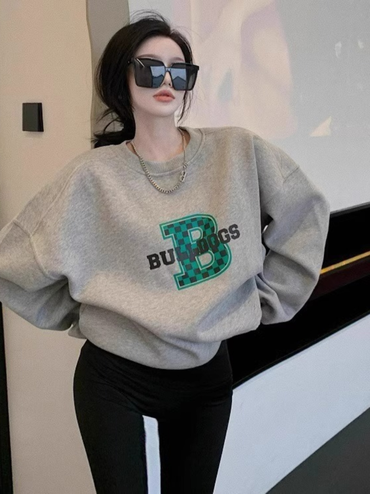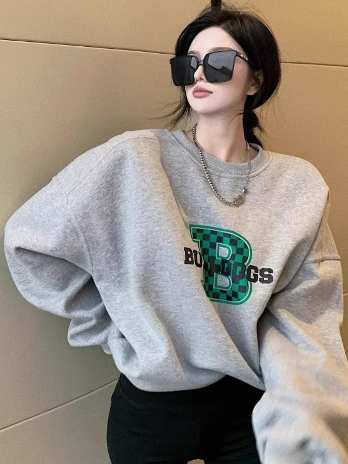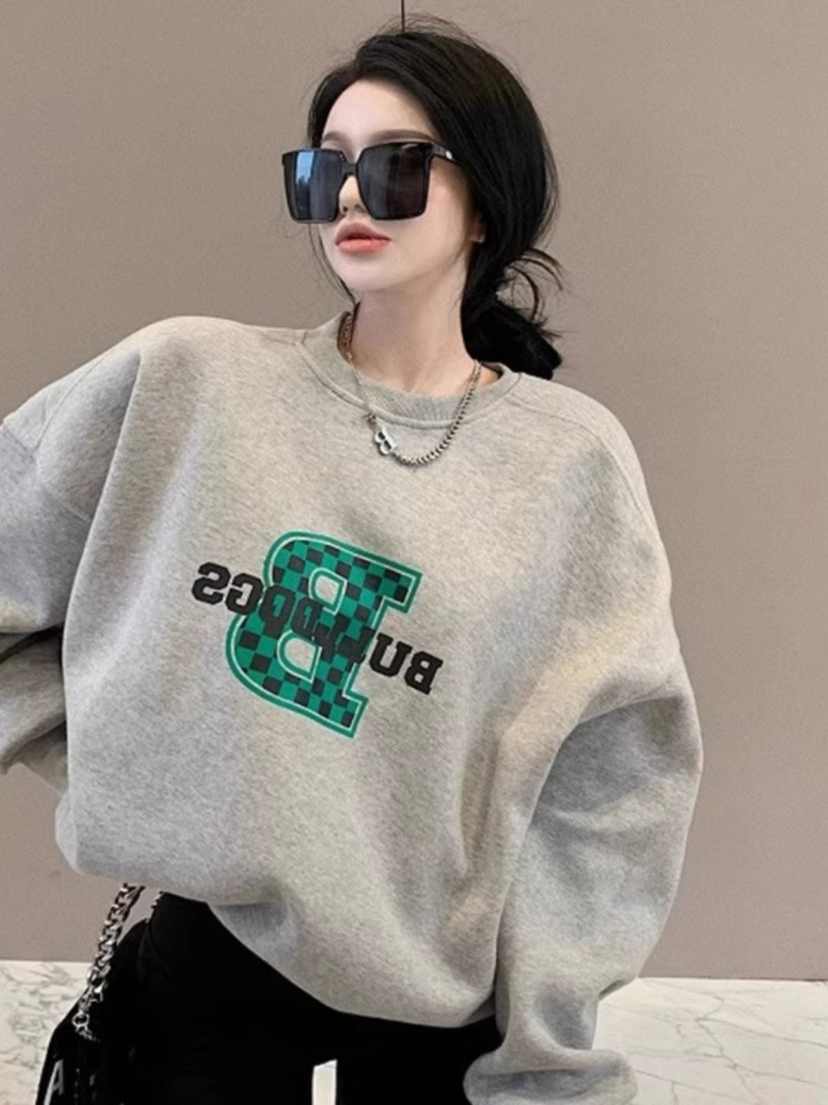 2025 Новое поступление Лучший продаваемый Американский ретро Гонконгский стиль Шикарный серый худи с круглым воротником с начесом Женский весна-осень Стильный нишевый стиль