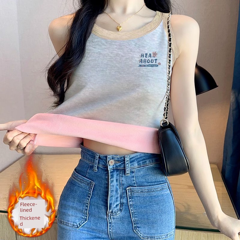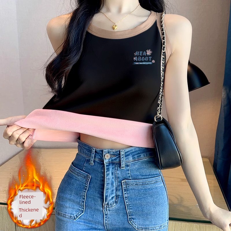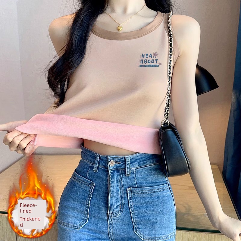 Новинка 2025 года, жилет с подкладкой из флиса, утепленный, сохраняющий тепло, майка без рукавов, женская, осенняя и зимняя, внутренняя одежда, блузка