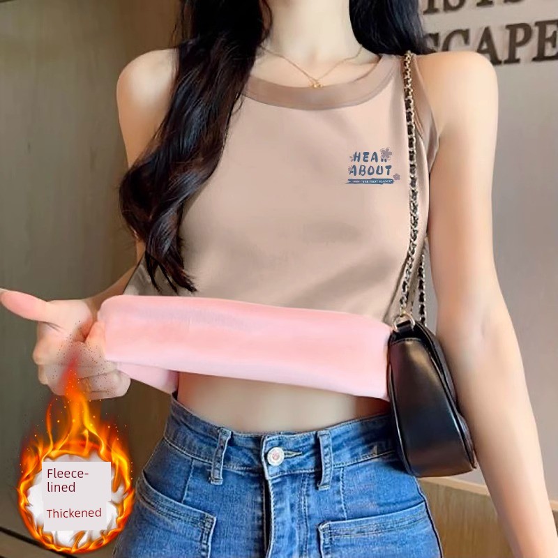 Новое нижнее белье 2025, осенне-зимний бархатный утепленный верхний слой, топ на бретелях, базовый нижний слой, без рукавов, Heattech, женский