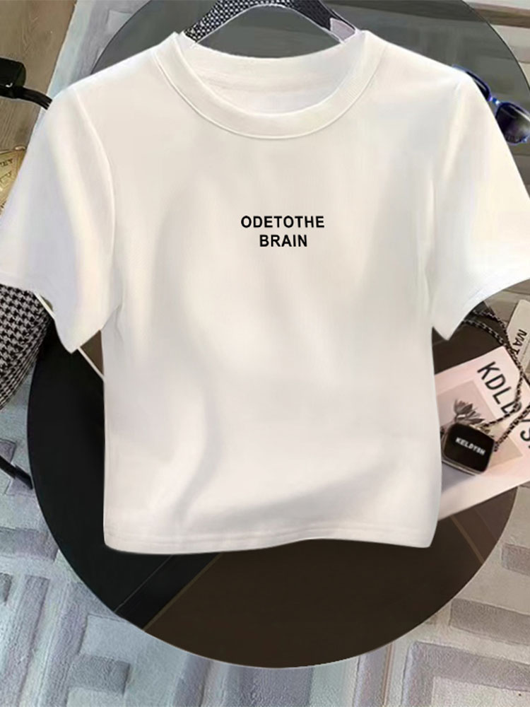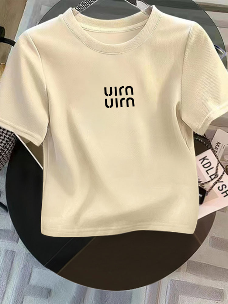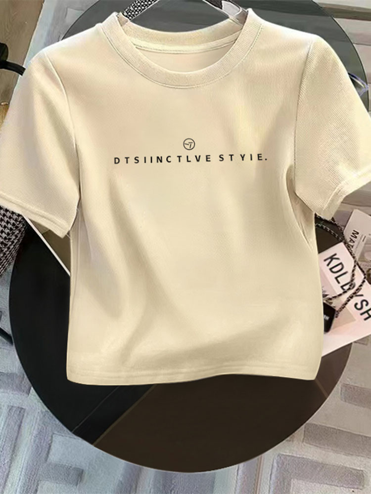 2025 Женская стильная футболка с коротким рукавом, нишевый стиль, короткая летняя плечевая футболка, свободная, корректирующая, с круглым вырезом, маленькая рубашка, топ