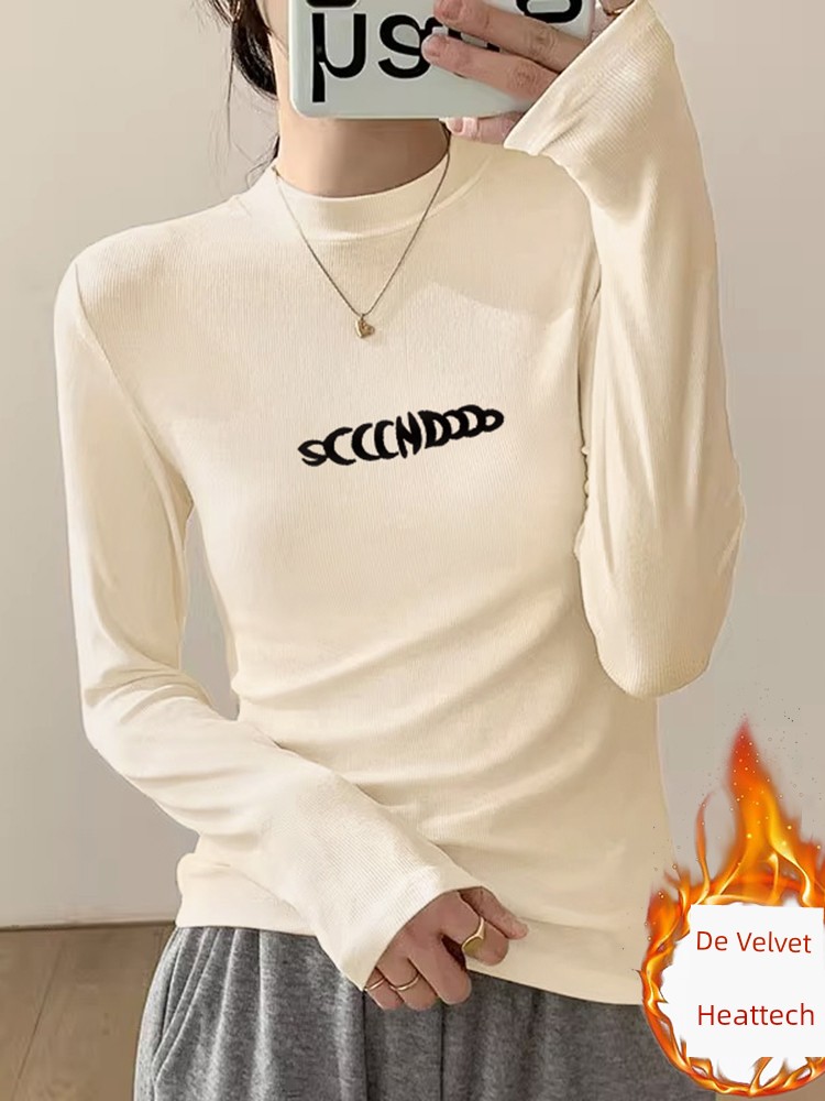 Женская футболка с длинным рукавом и спущенными плечами 2025, модный универсальный топ со средней горловиной из дралона, утолщенная нижняя рубашка для осени и зимы
