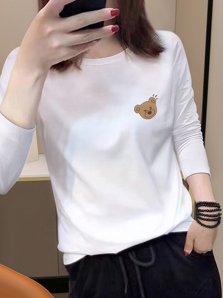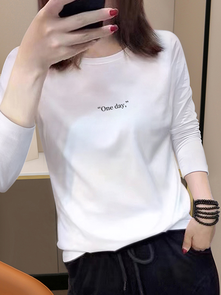 Весенне-осенняя женская футболка из чистого хлопка, летняя белая футболка с длинным рукавом, женский большой размер, свободный топ, толстовка, внутренняя базовая рубашка