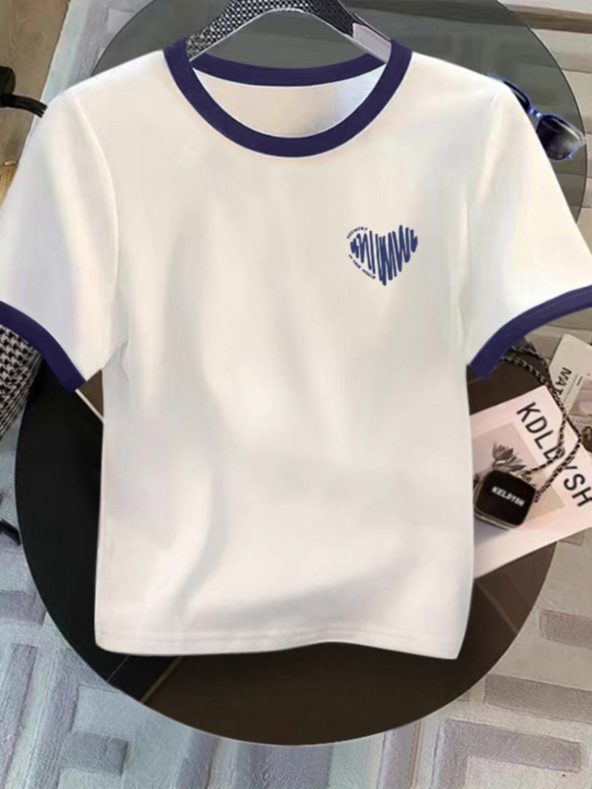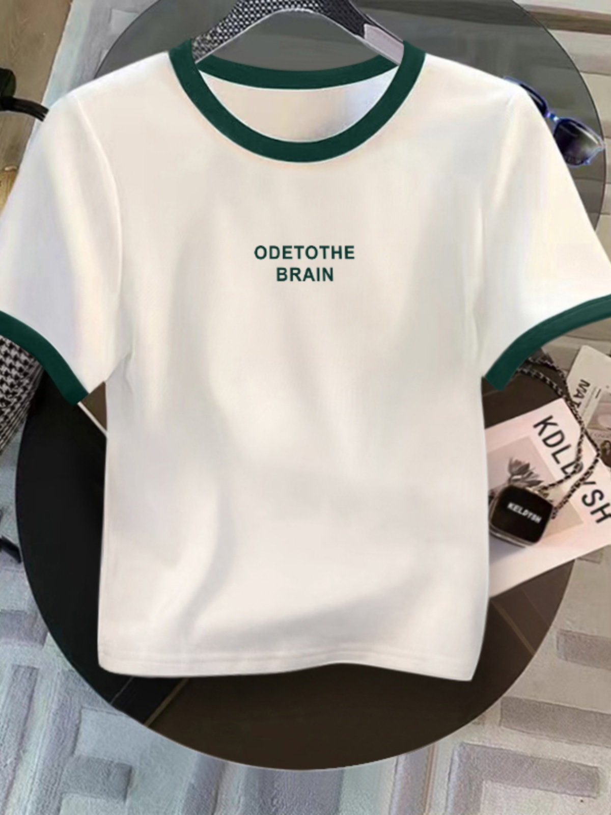 2025 Летнее Новое Поступление Широкие Плечи Свободные Стройнящие Хлопковые Футболки Женские Повседневные Легкие в Сочетании Футболки с Круглым Вырезом Контрастного Цвета с Коротким Рукавом