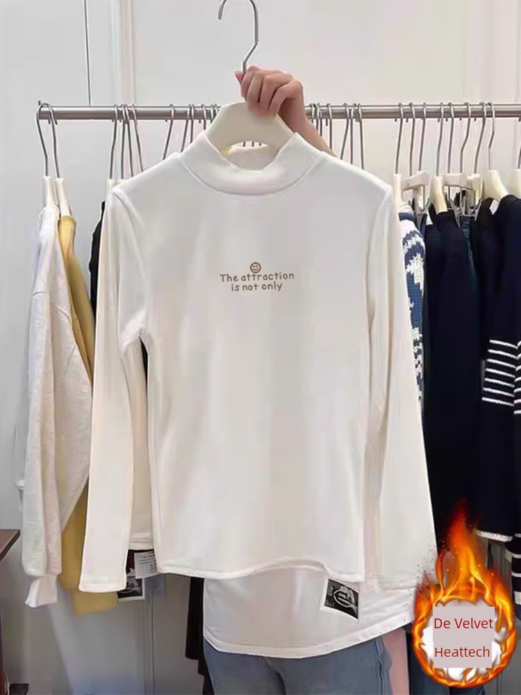 2025 Белая новинка Футболка Утолщенная Полуворотник Нижняя Рубашка Осень и Зима Женская Дралоновая Нижняя Одежда Лонг Сливе Топ Ins Мода