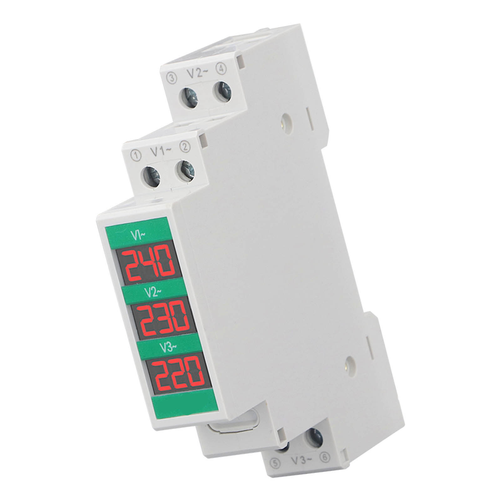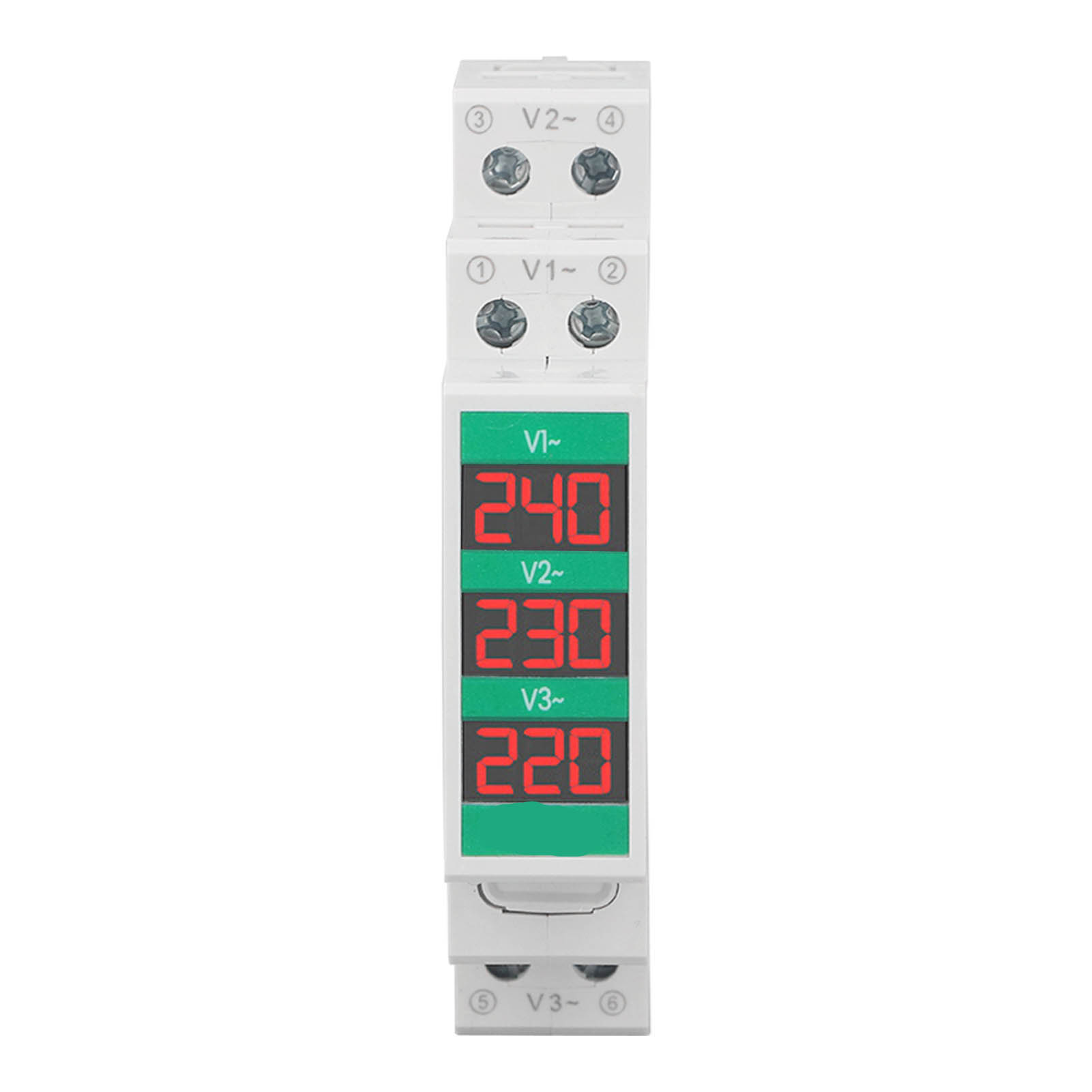 3-фазный цифровой вольтметр переменного тока с креплением на DIN-рейку и ЖК-дисплеем 60-450В