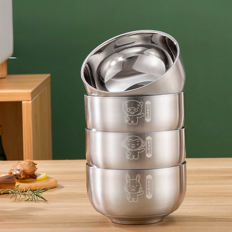 304 миска из нержавеющей стали, пищевая, двенадцать зодиаков, детская двухслойная, термозащитная, ударопрочная миска для дома, детская миска для лапши быстрого приготовления