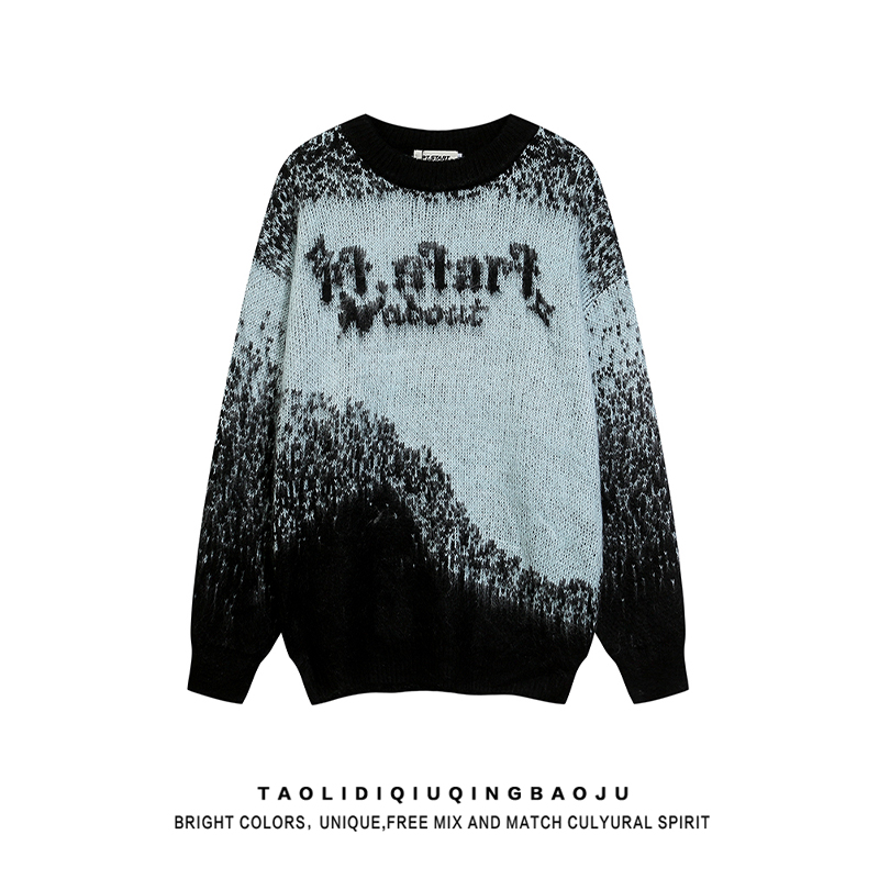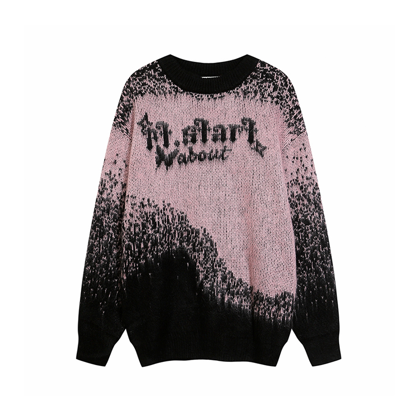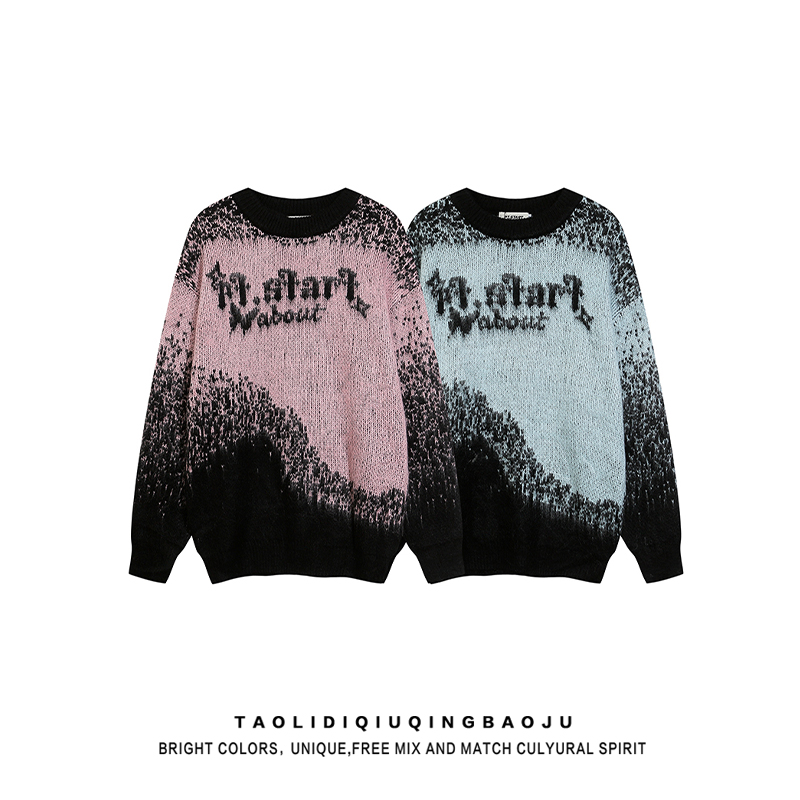 Американский свитер с круглым вырезом и градиентом из конского волоса, женский, зимний, ретро, алфавитный жаккард, свободная посадка, парный свитер, тренд