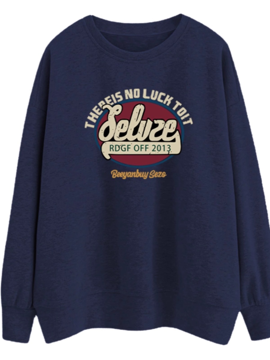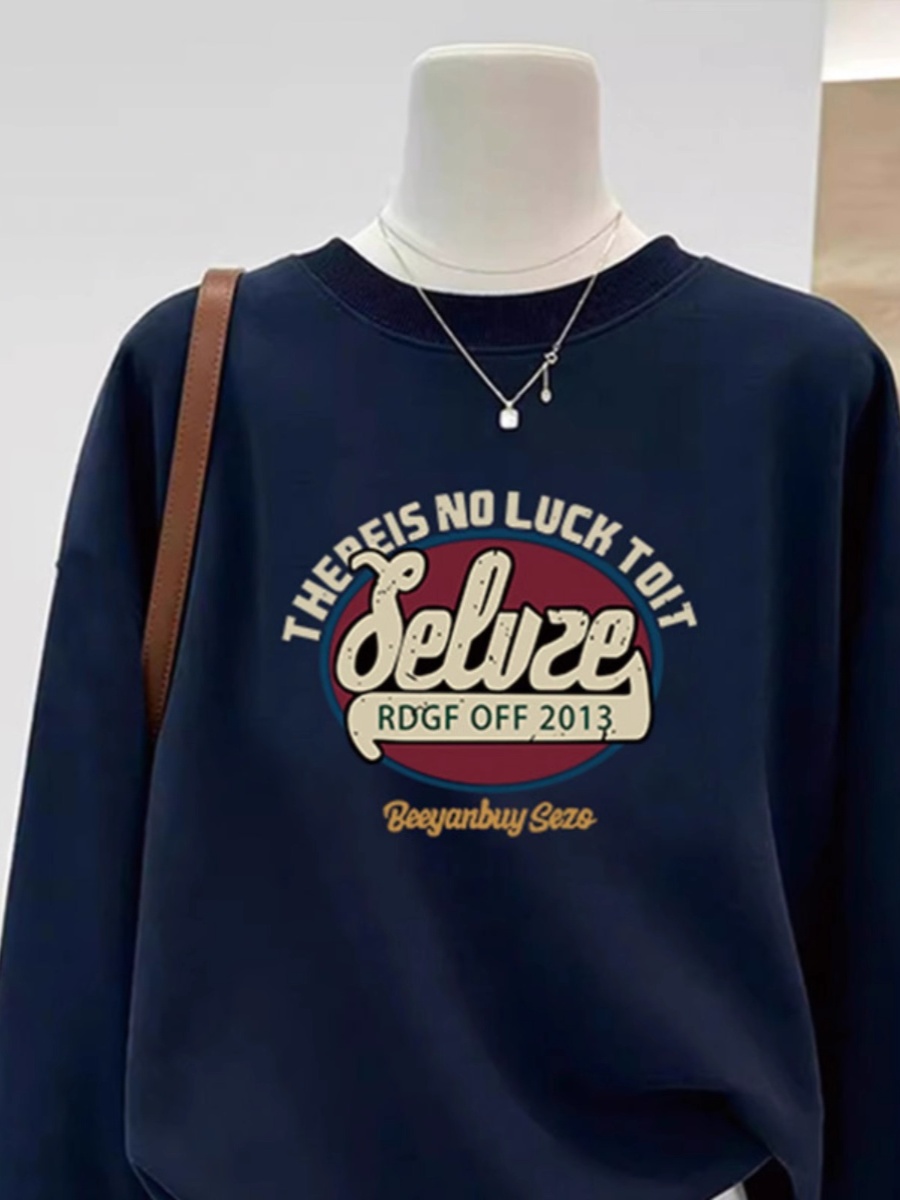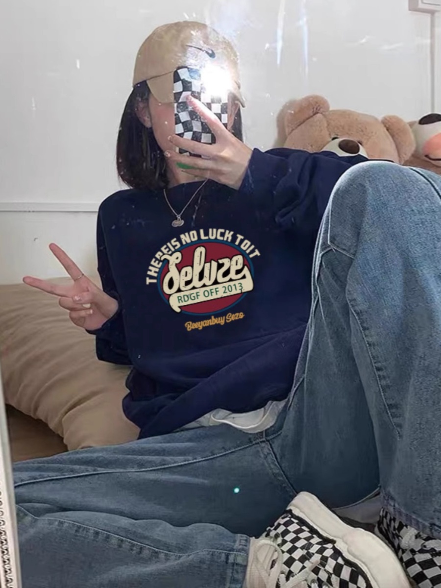 Толстовка на круглом вырезе в американском стиле с буквами, темно-синяя, женская, весна-осень 2025, новый свободный топ, корейский стиль, верхняя одежда