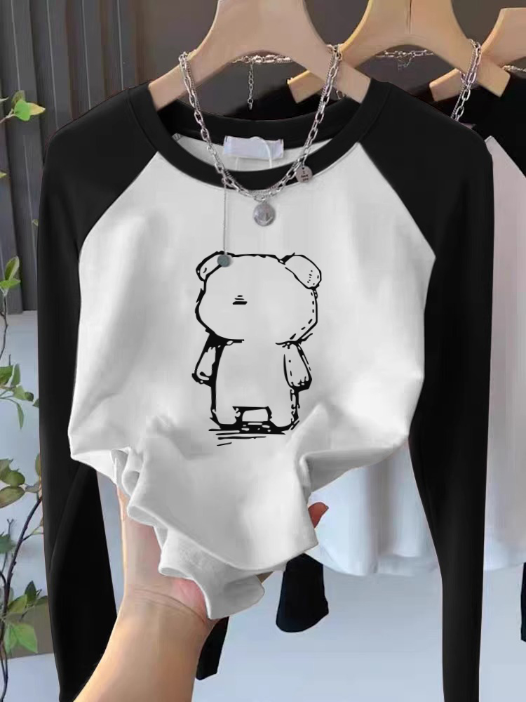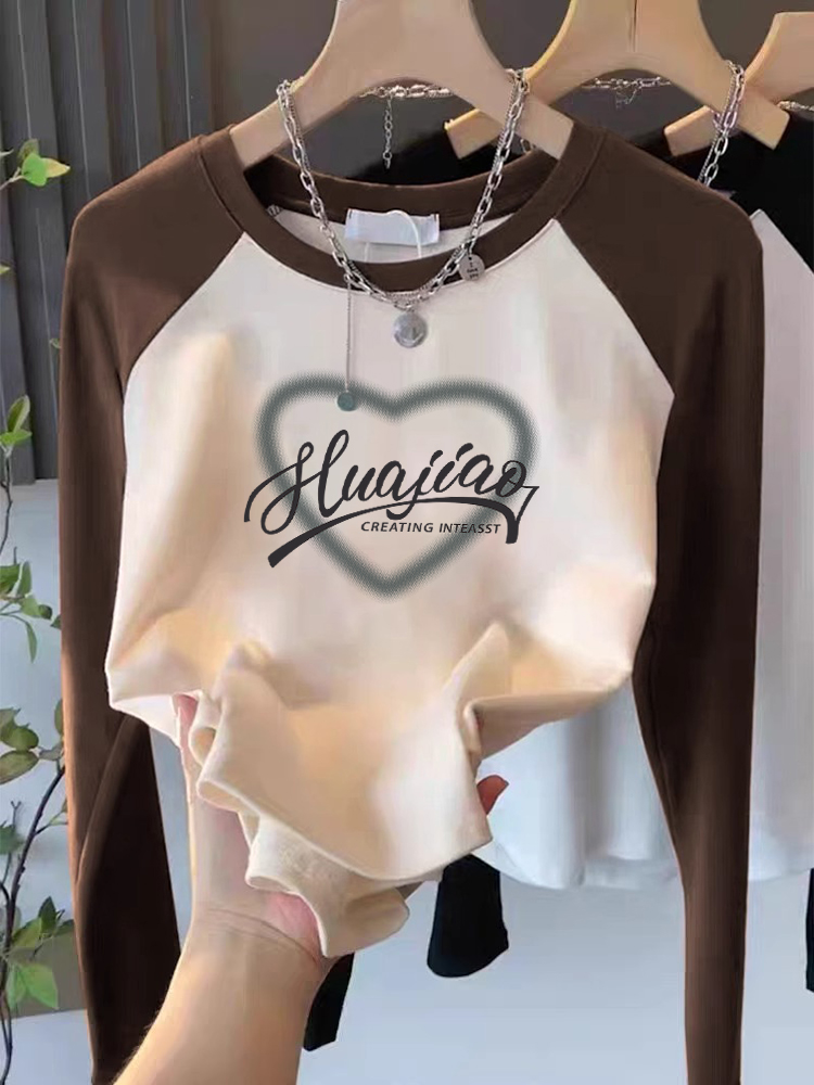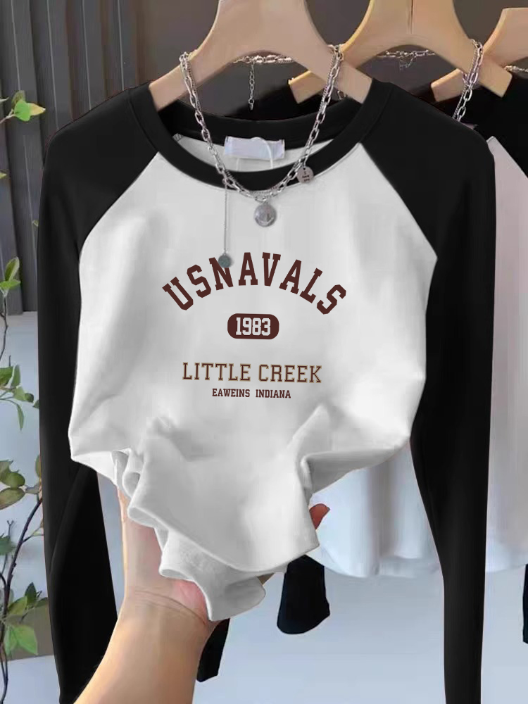 Американская пэчворк футболка с длинным рукавом из чистого хлопка, женская одежда, весна/осень, маленький тонкий базовый топ, короткие