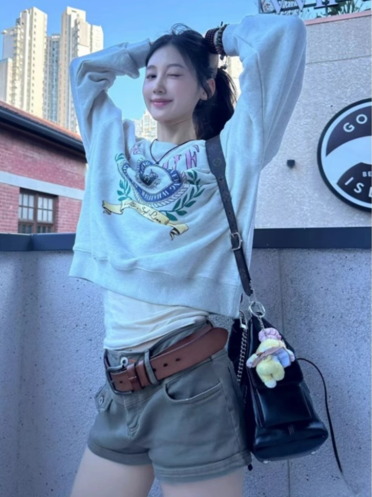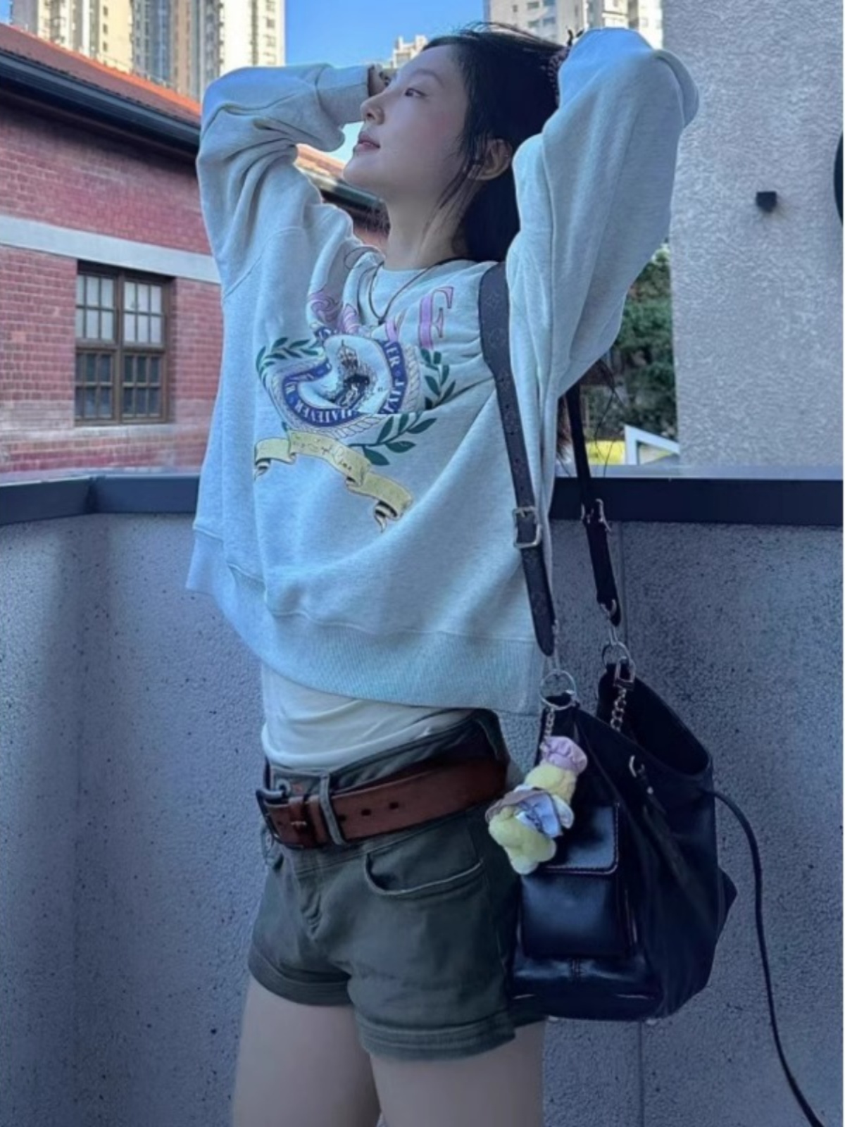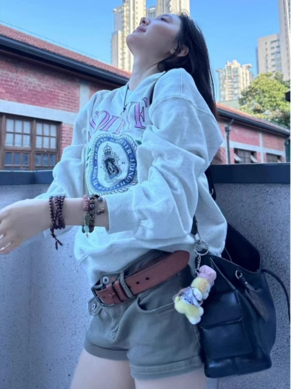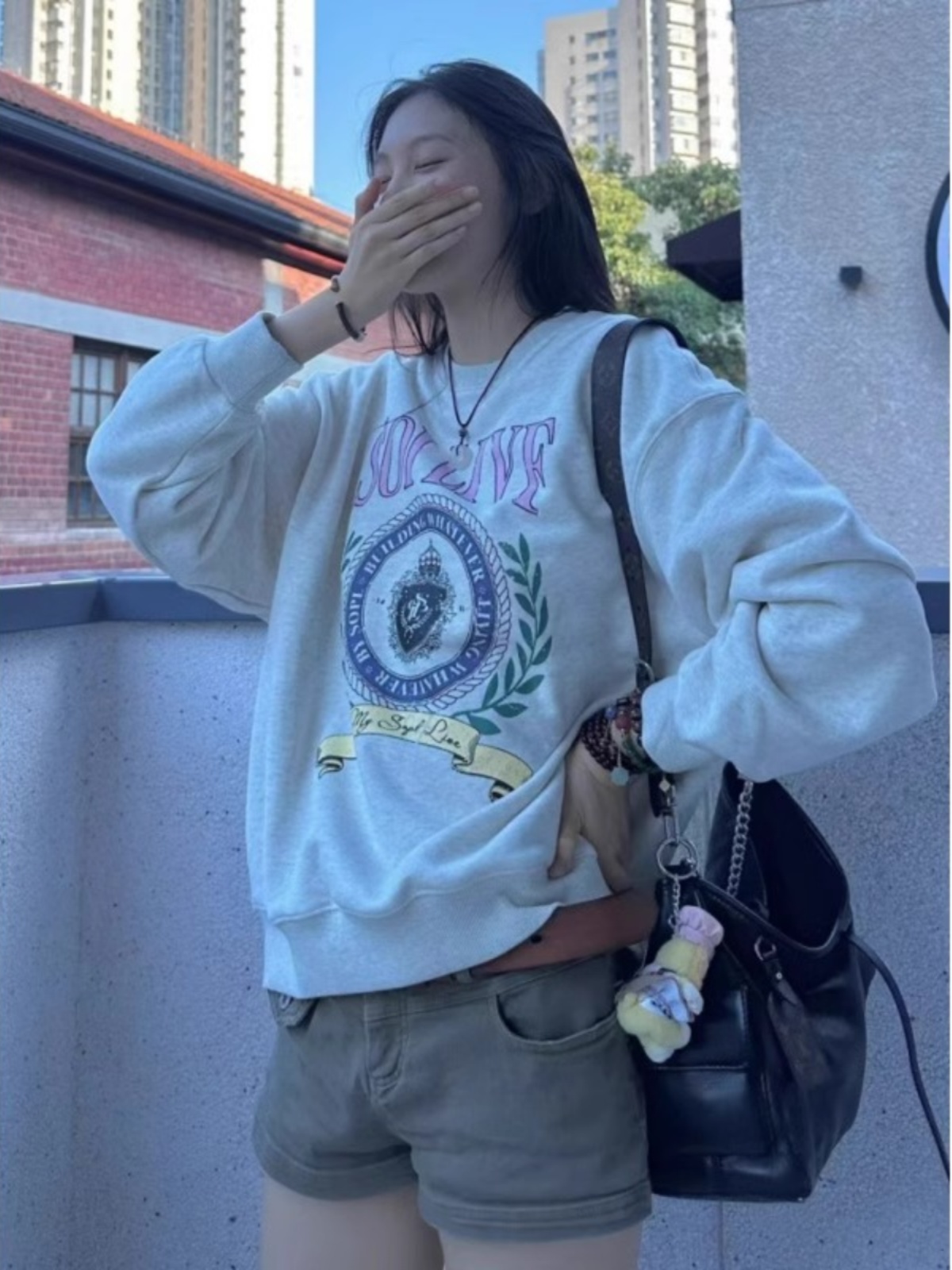 Американский ретро-свитшот с принтом в виде буквы, повседневный, свободный, с круглым вырезом, пуловер, женский, весна/осень, хлопковый цвет, с длинными рукавами
