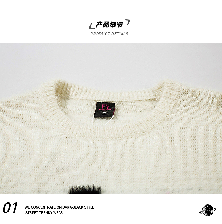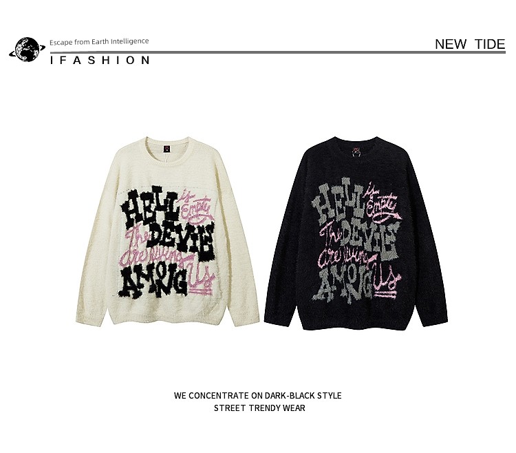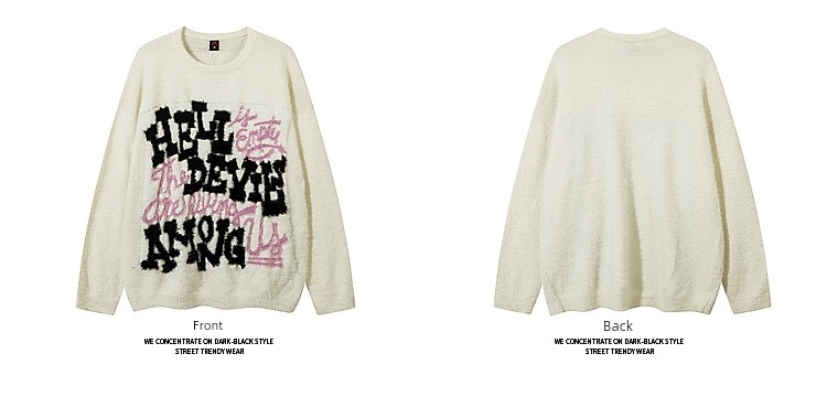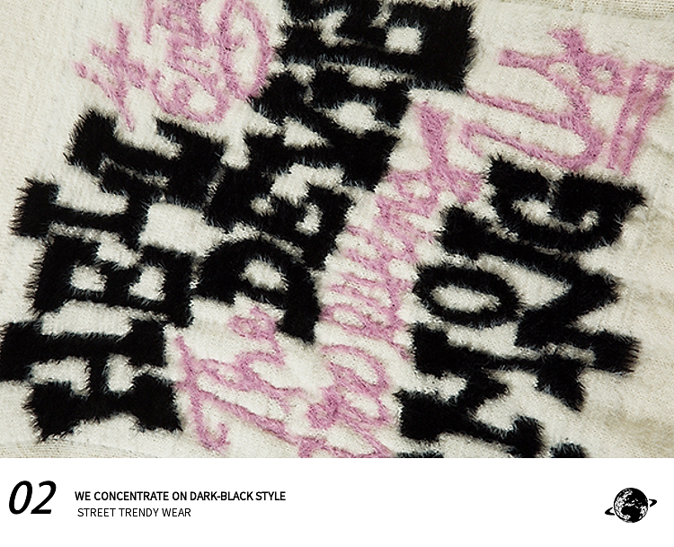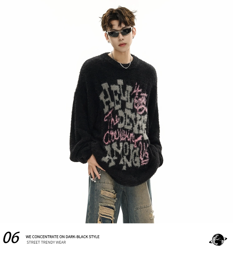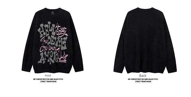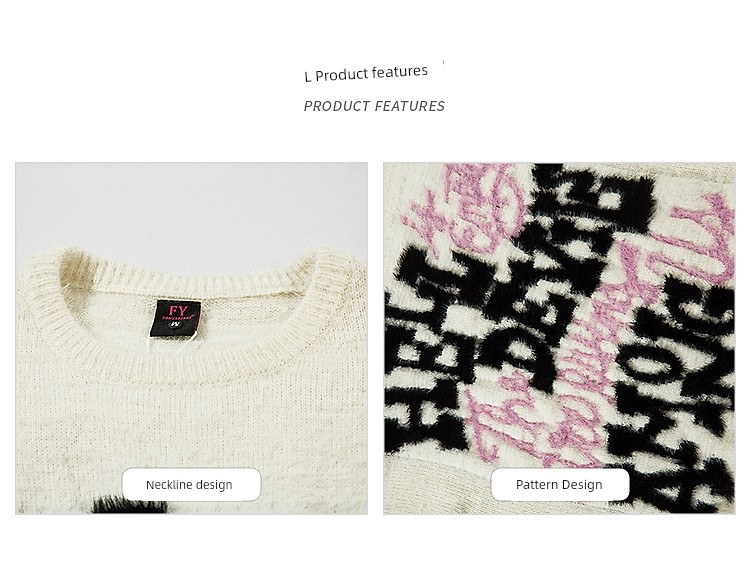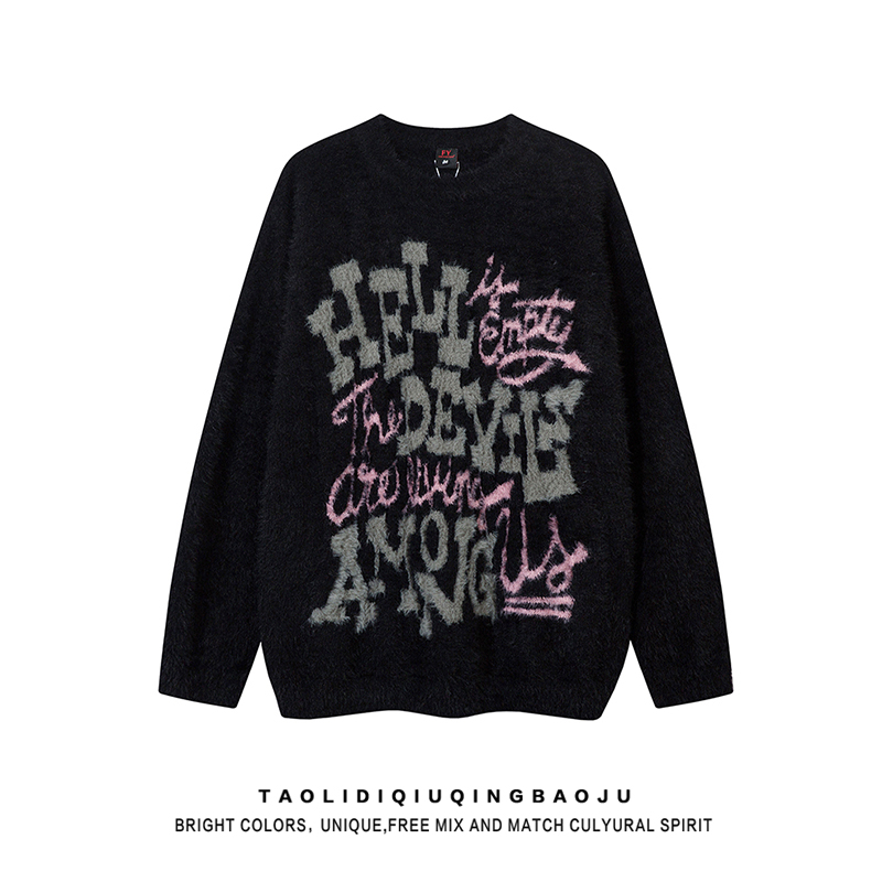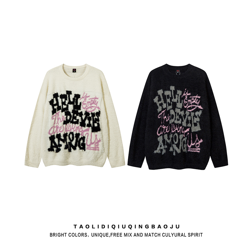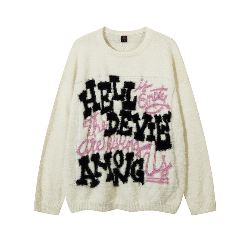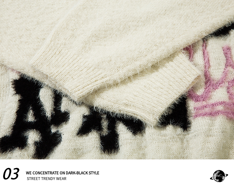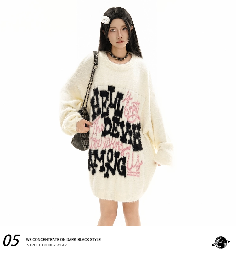 Американский ретро свитер из мохера с жаккардовым рисунком в виде букв, женский, зимний, модный, свободный, повседневный, пуловер, трикотаж