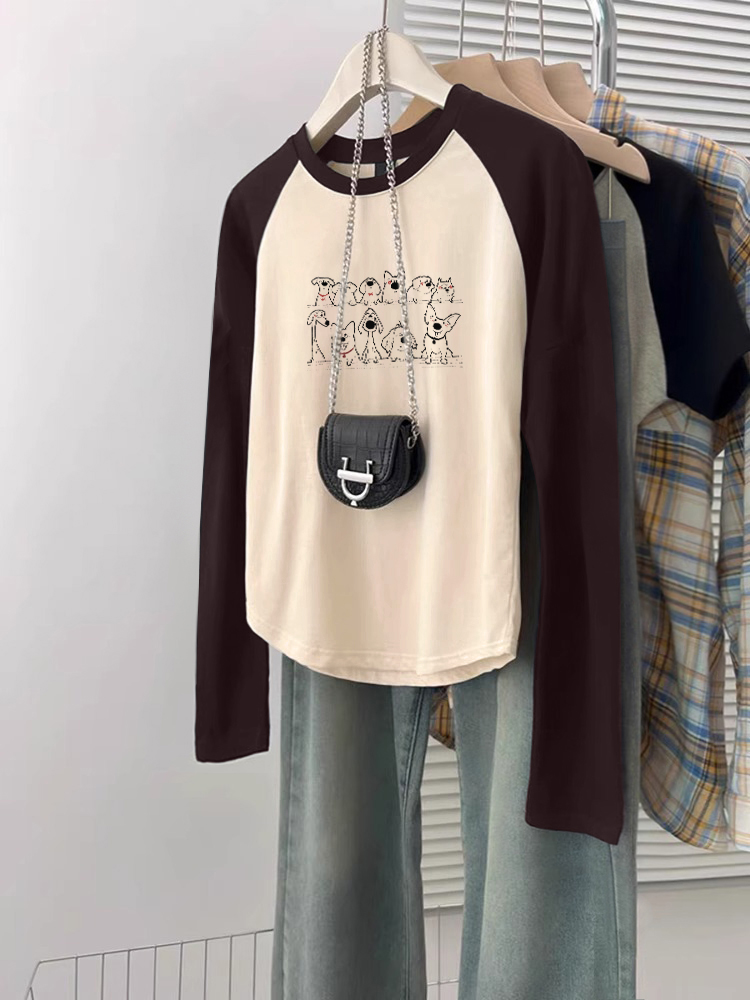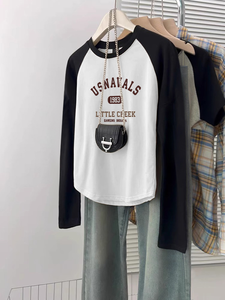 Американская ретро футболка с длинным рукавом для женщин, тонкая, стройнящая, короткая, базовый топ, новинка 2025 года, топ с рукавами реглан