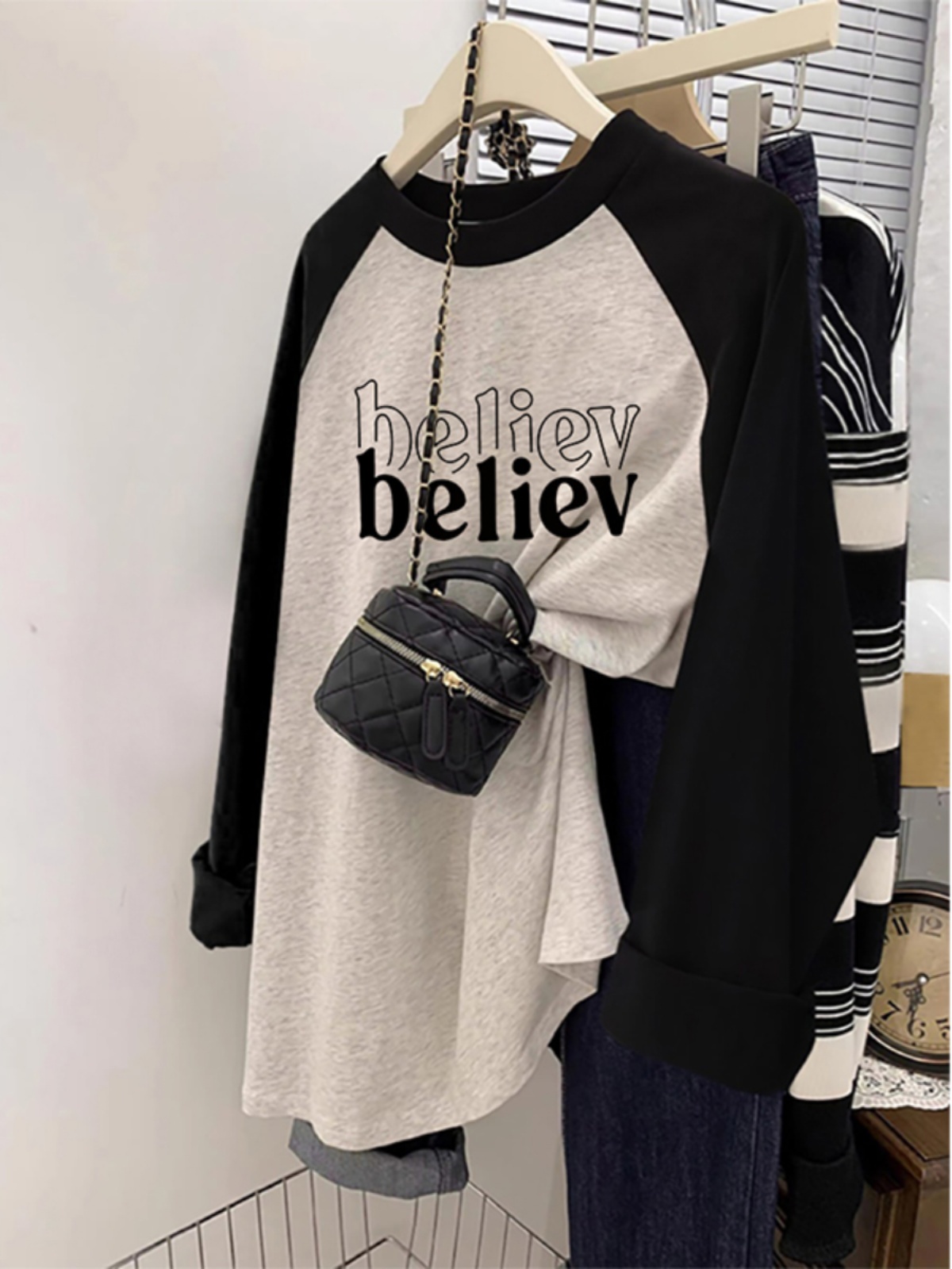Американская ретро футболка с длинным рукавом и рукавами реглан, женская, новая коллекция 2025, осень и зима, с начесом, нижняя рубашка, большой размер, свободный топ