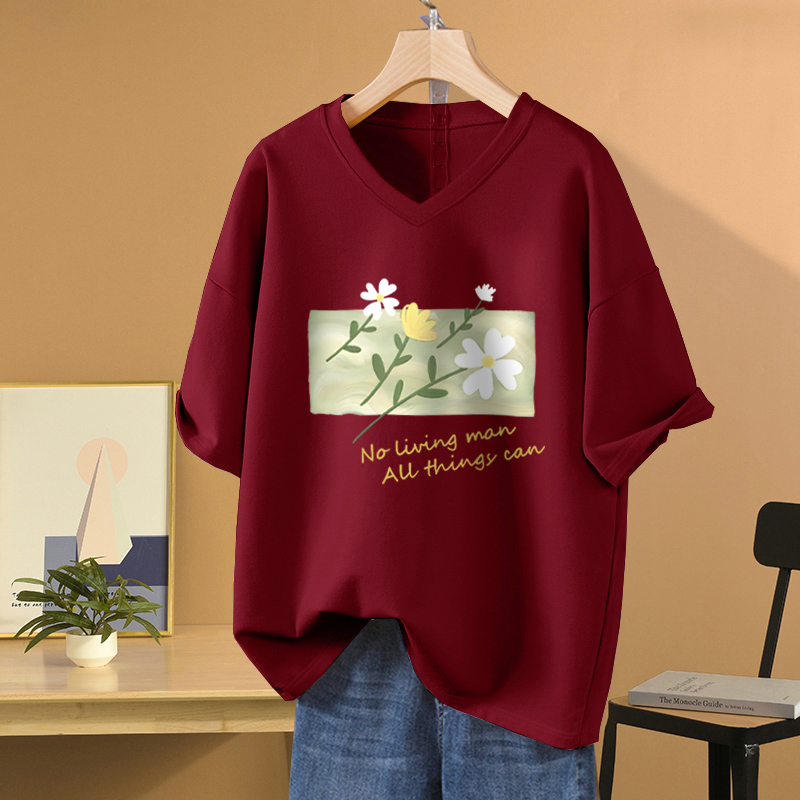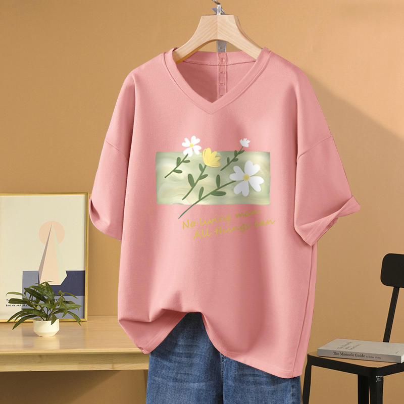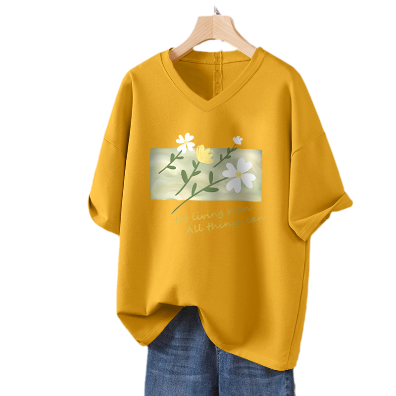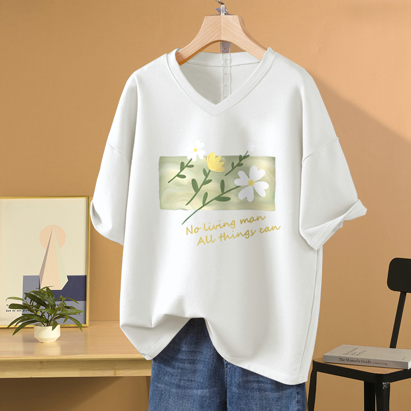 Американский Ретро Футболка с Короткой Рукавом из Чистого Хлопка Женская Большого Размера Летняя 2025 Новый Дизайн Чувство 150,00 кг V-образный Вырез Топы