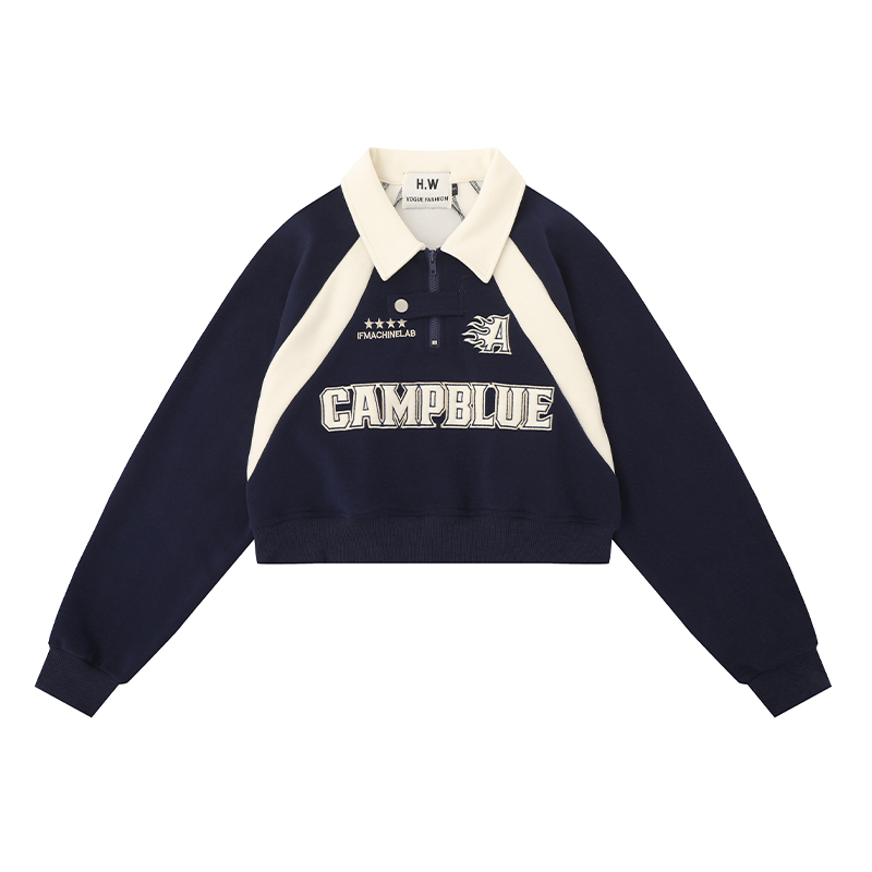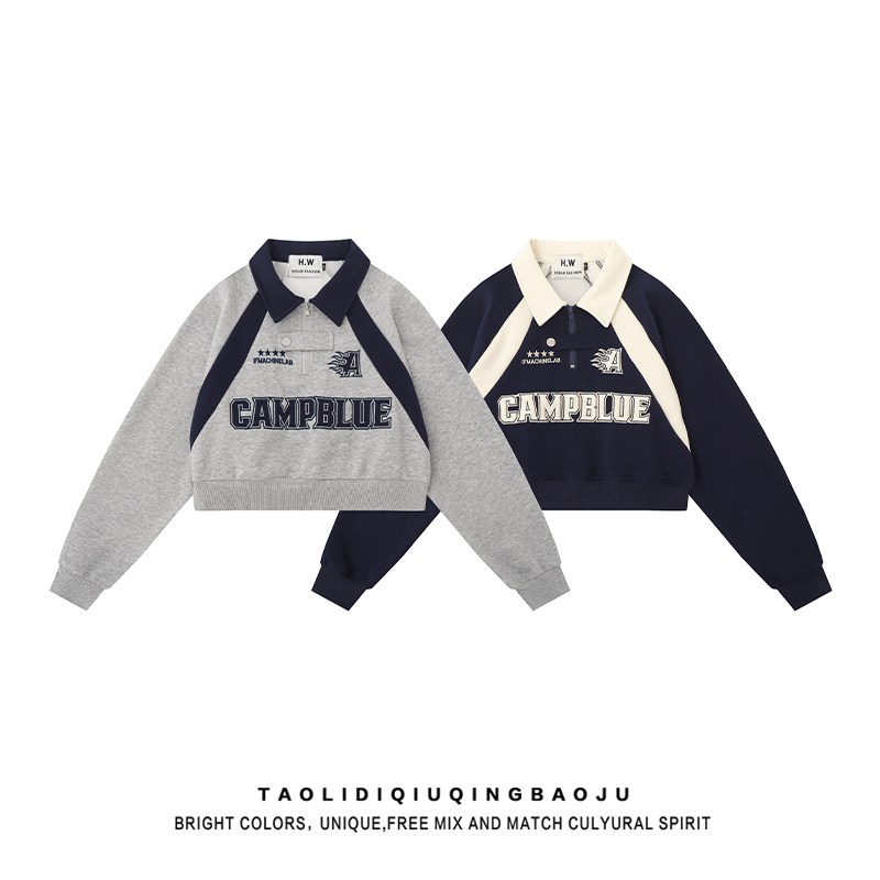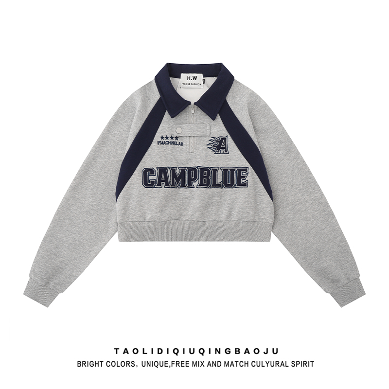 Американский уличный стиль с буквенной вышивкой и контрастной полосой, толстовка с воротником-поло, женская, свободная, повседневная, универсальная, преппи-стиль, короткие топы, модные