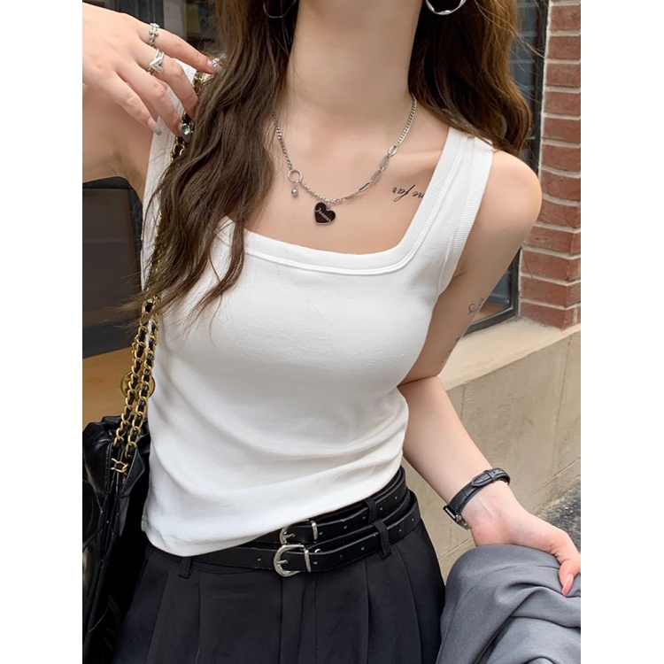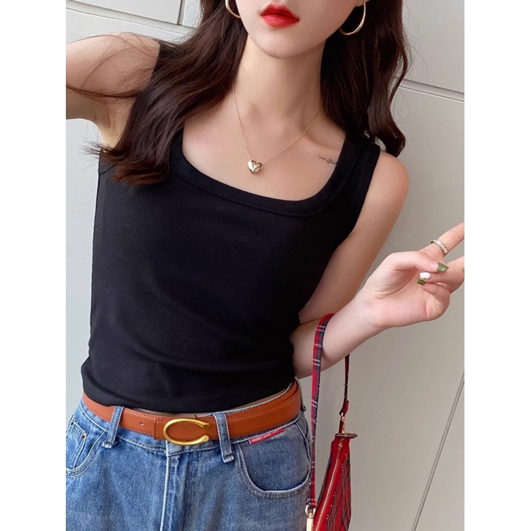 Абрикосовый топ-камисоль для женщин, комплект нижнего белья 2025, новинка лета, верхняя одежда, нижняя рубашка с квадратным вырезом, черный, хлопок, без рукавов