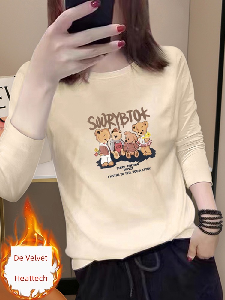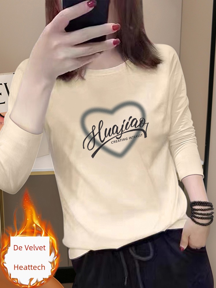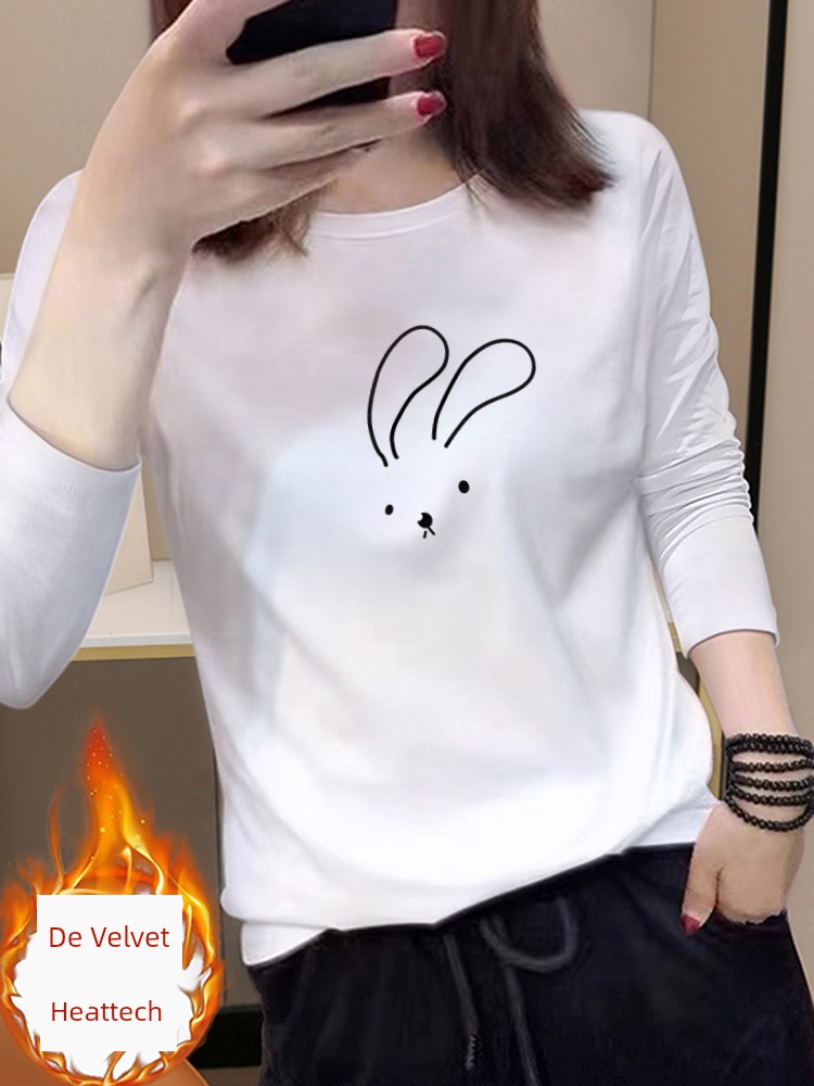 Осень-зима 2025 Новое поступление флисовая футболка с длинным рукавом женская белая свободная большого размера байковая нижняя рубашка нижняя одежда блузка