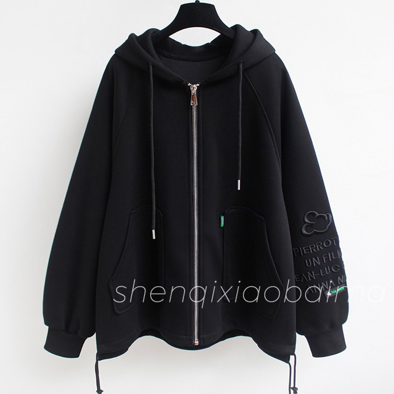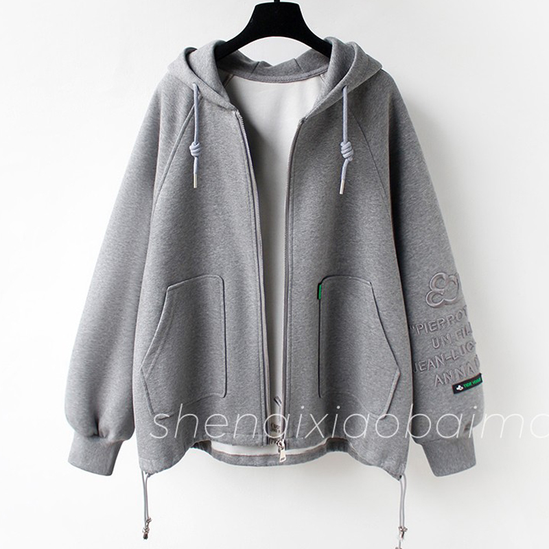Осенне-зимняя толстовка-кардиган большого размера с флисовой подкладкой для женщин: 1.00кг-150.00кг, свободный крой для полных девушек, теплая верхняя одежда, стиль Ins