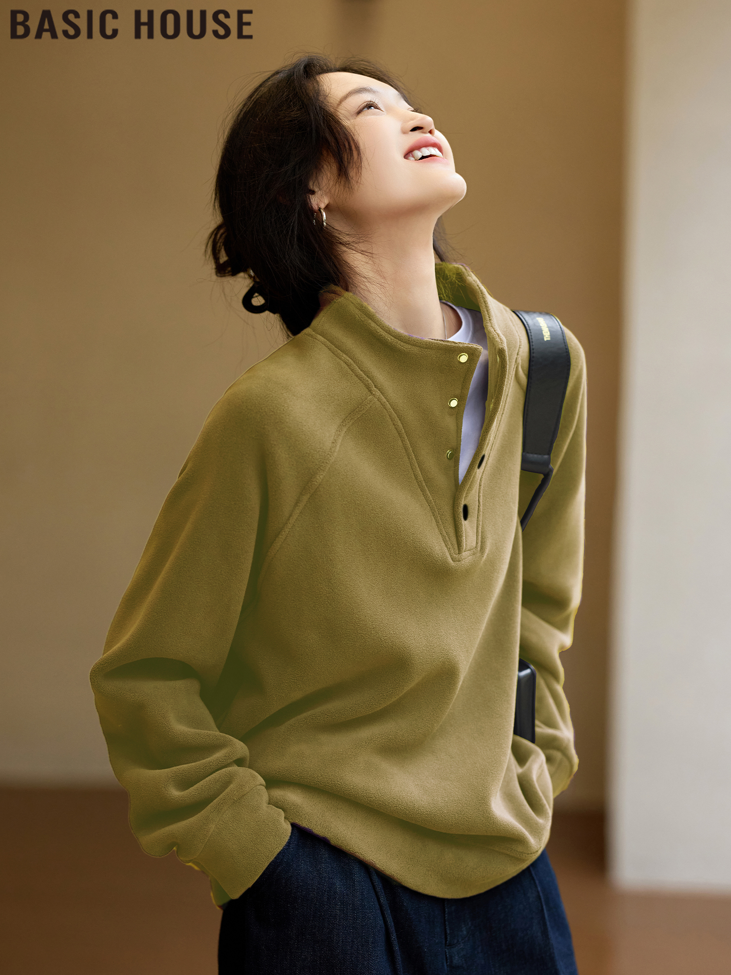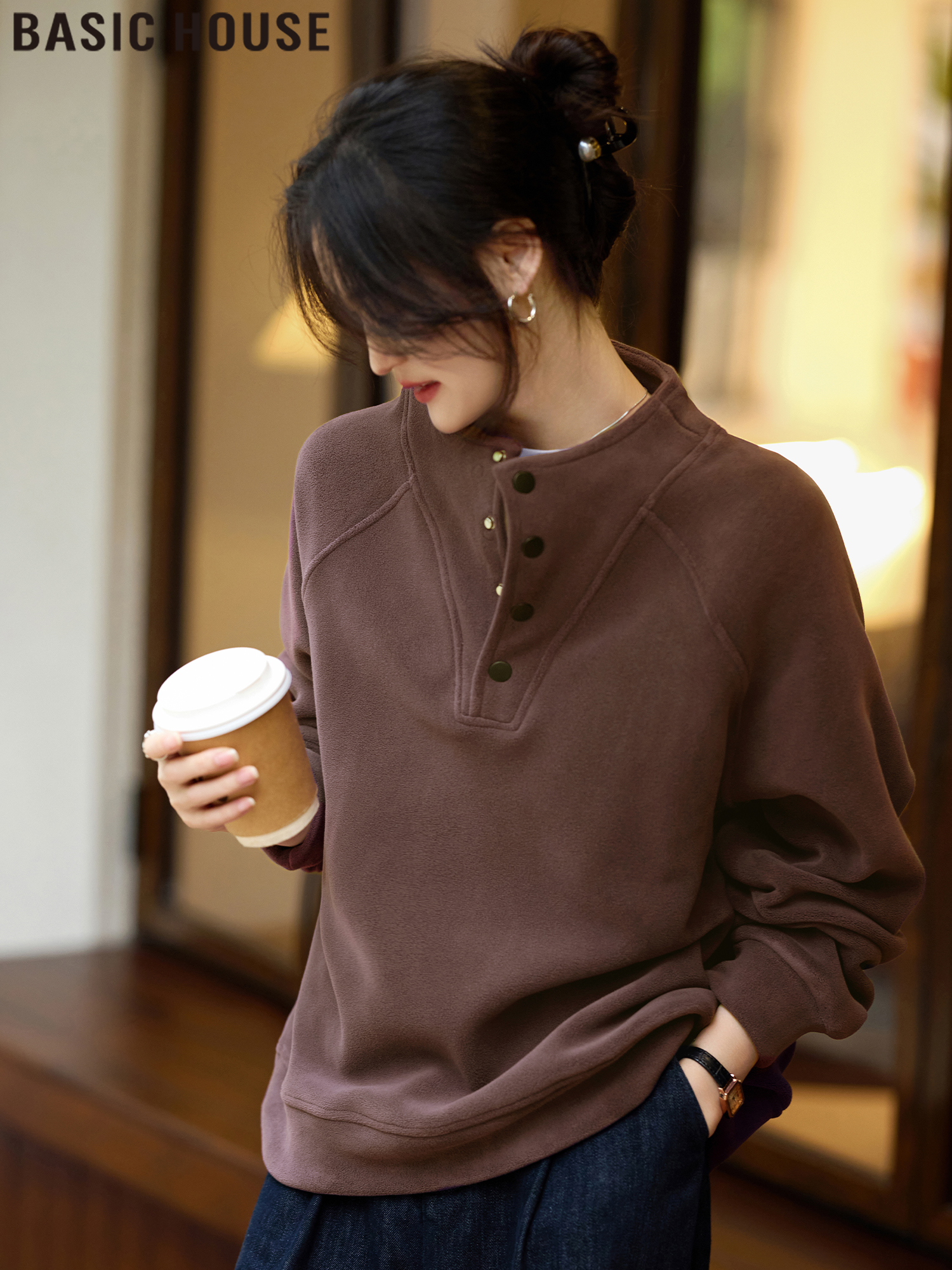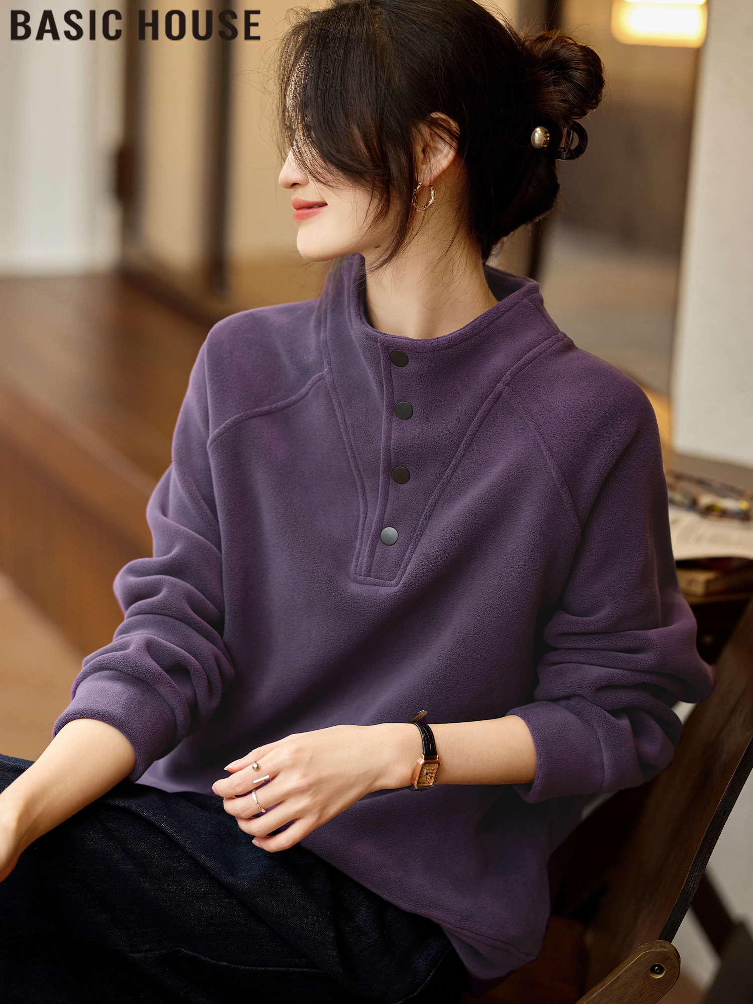 Базовый дом/Baijiahao Абсолютно фиолетовая толстовка с воротником-стойкой и пуговицами из дралона, пуловер для женщин, весна