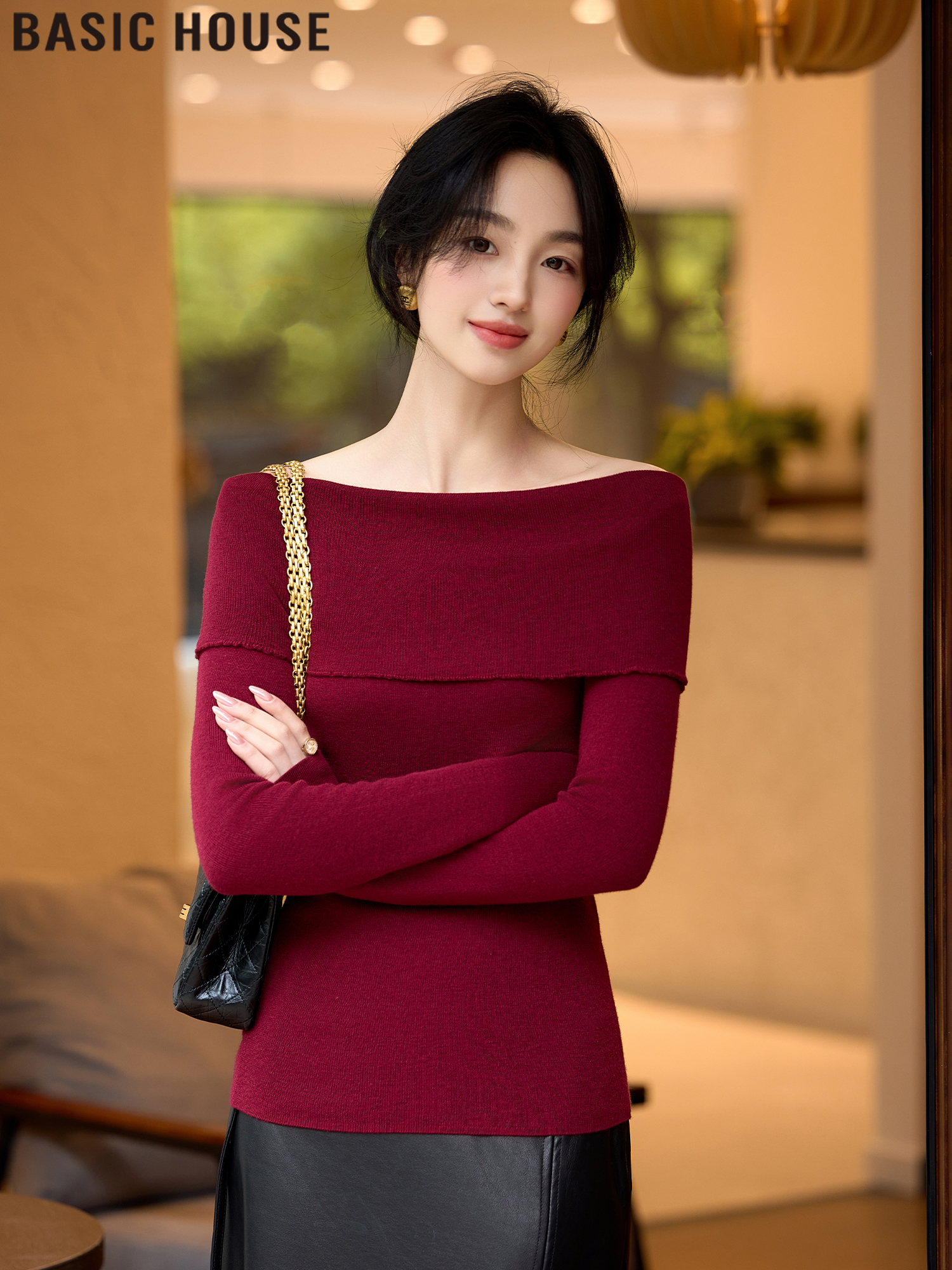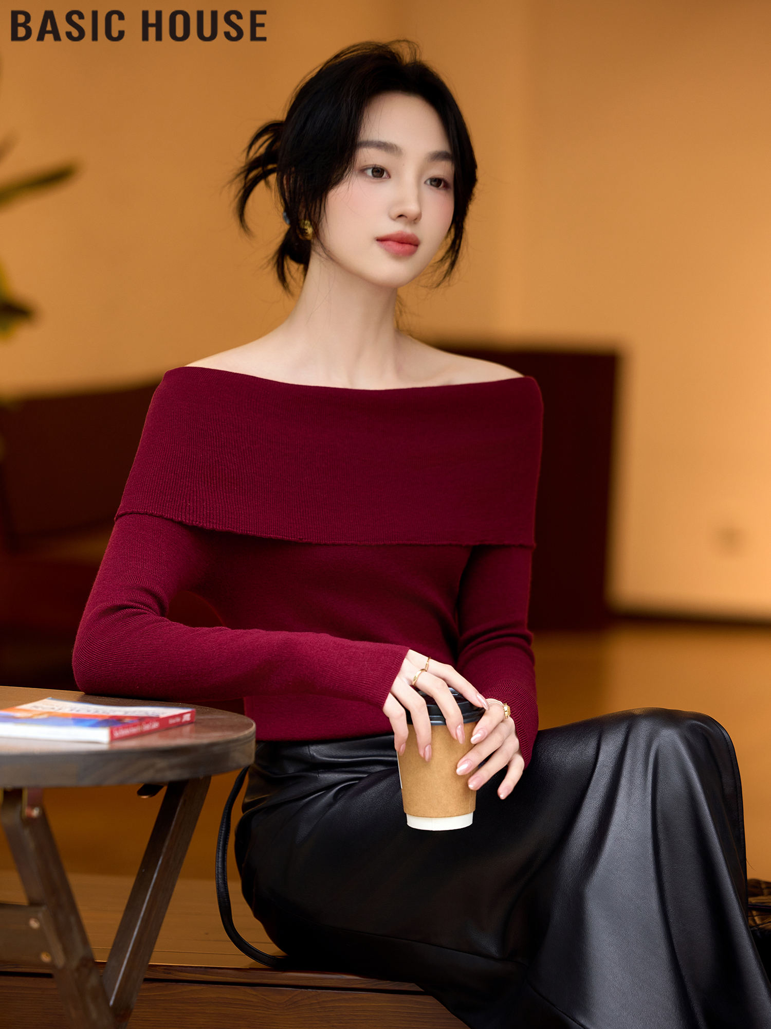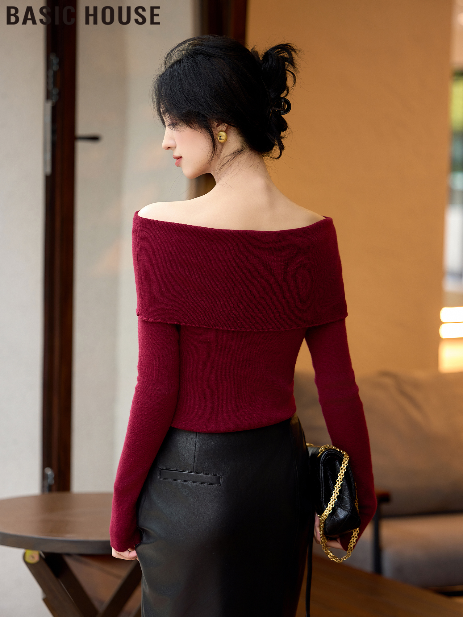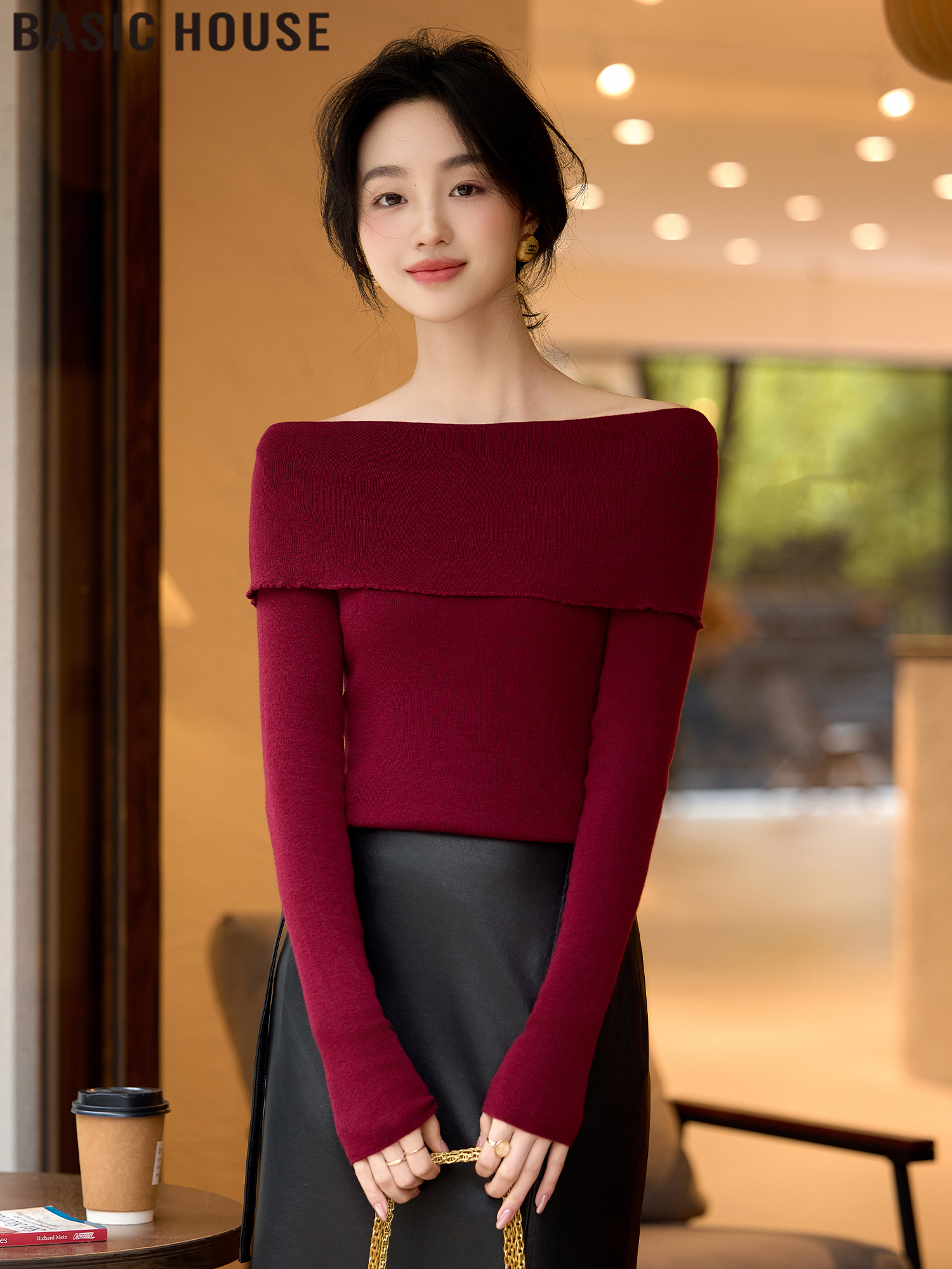 Базовая футболка с открытыми плечами из шерсти Ankela красного цвета для женщин, весна