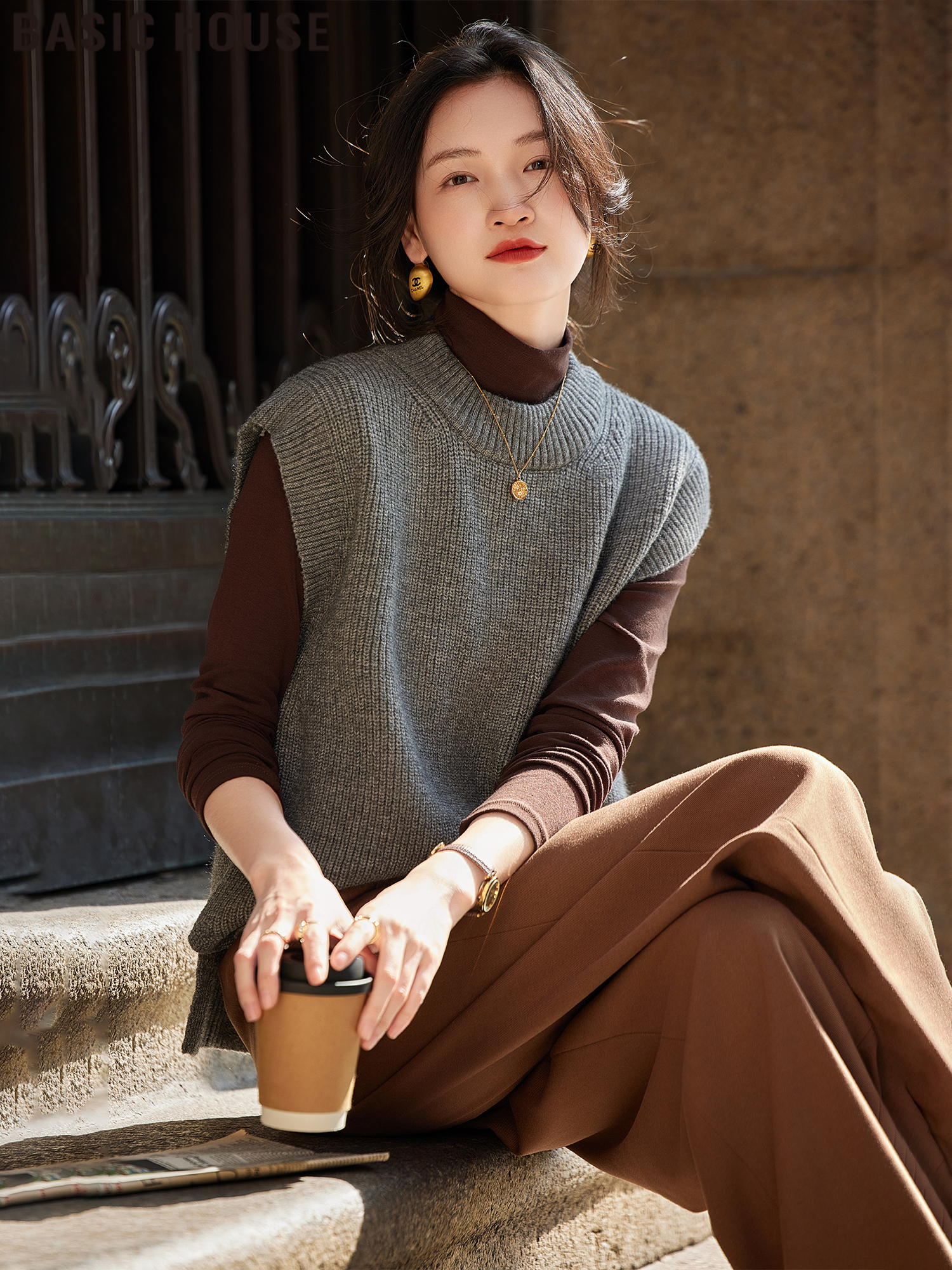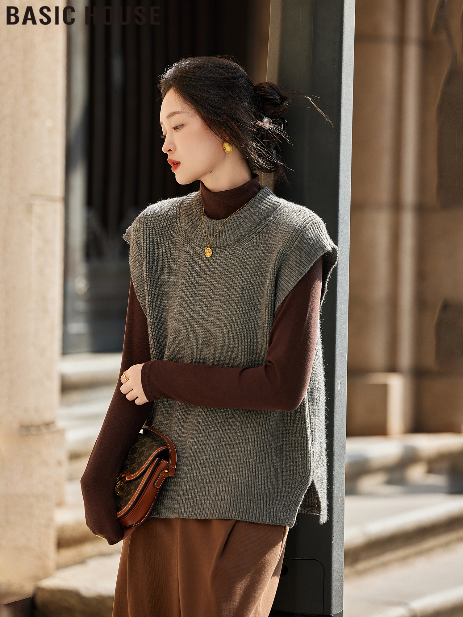 Базовый дом/Baijiahao Серая серия Спокойный стиль Жилет-пальто из трикотажа с завязками Женский весна 2025 Новинка
