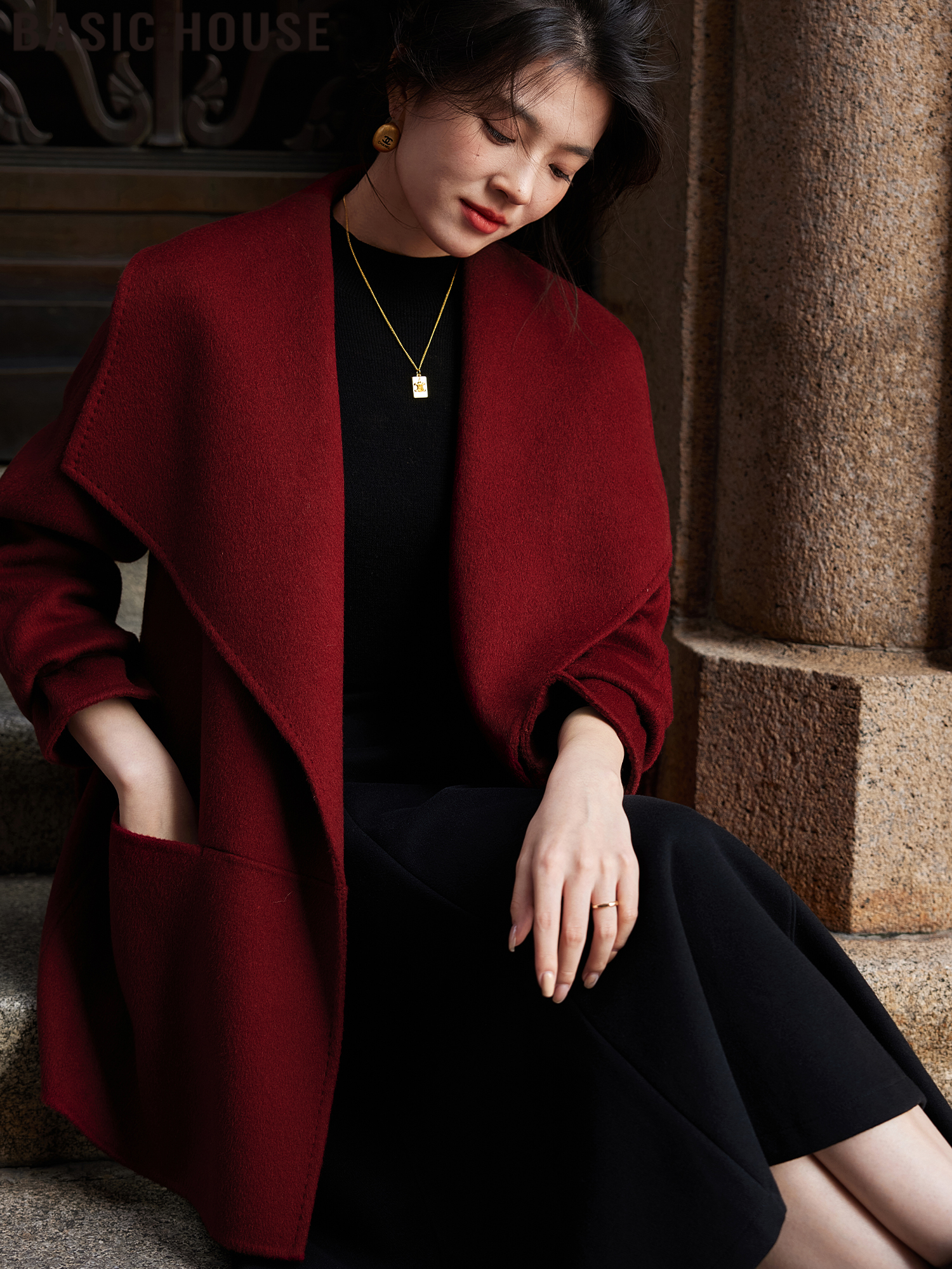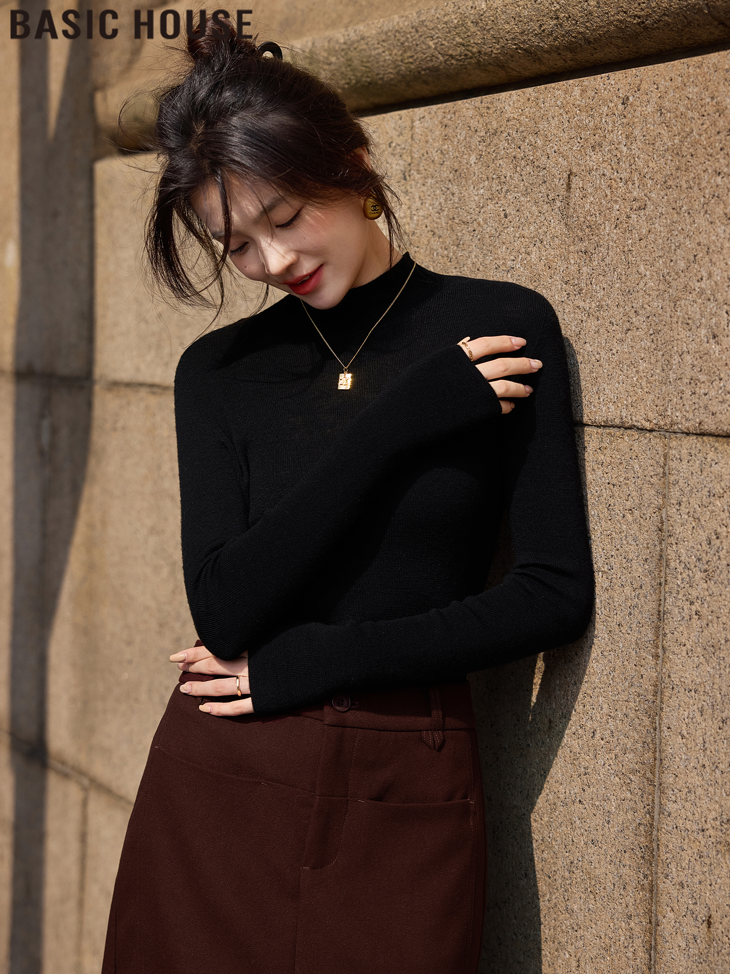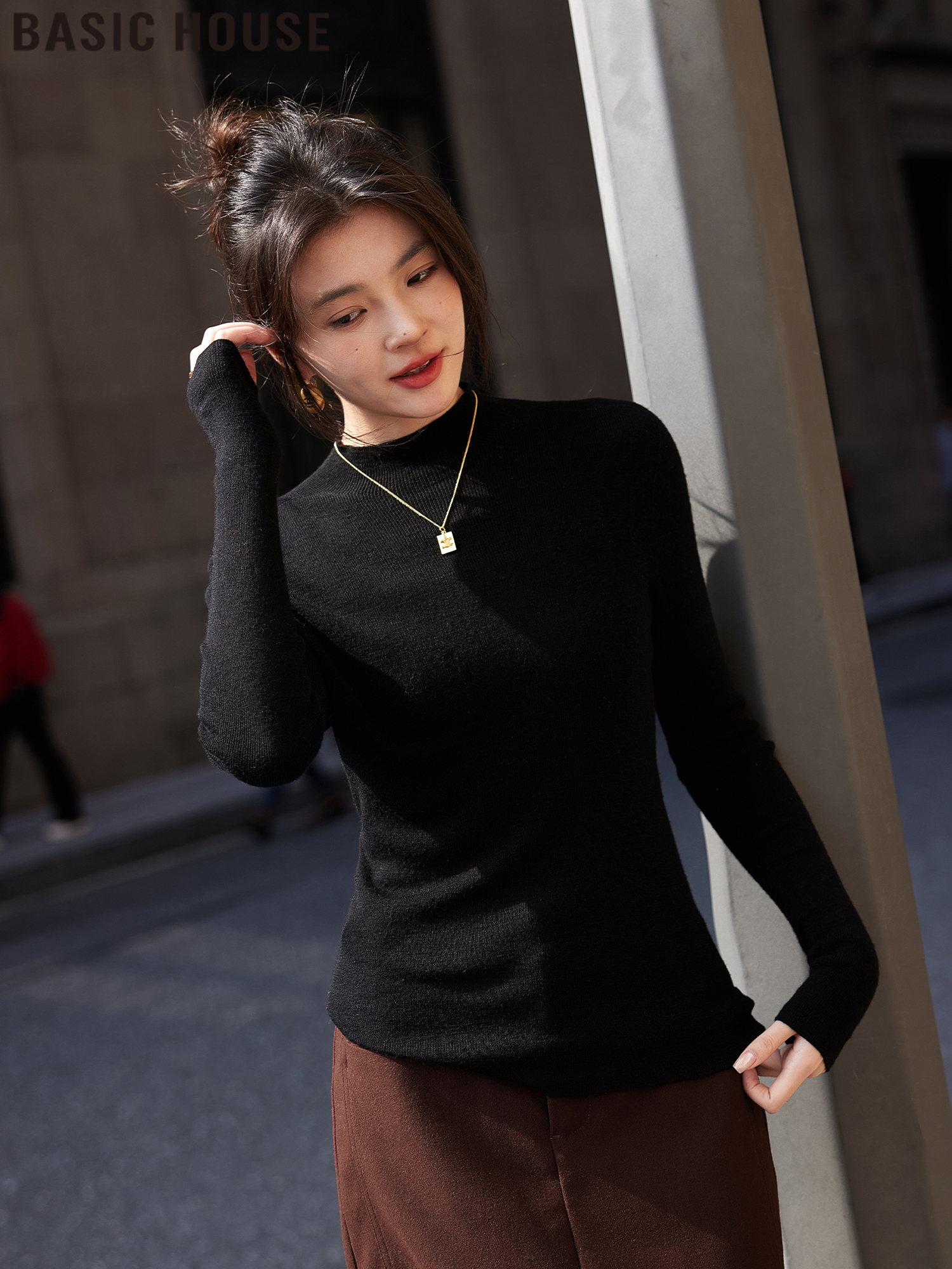 Basic House/Baijiahao Женская шерстяная водолазка - Новинка весны 2025, черная вязаная рубашка