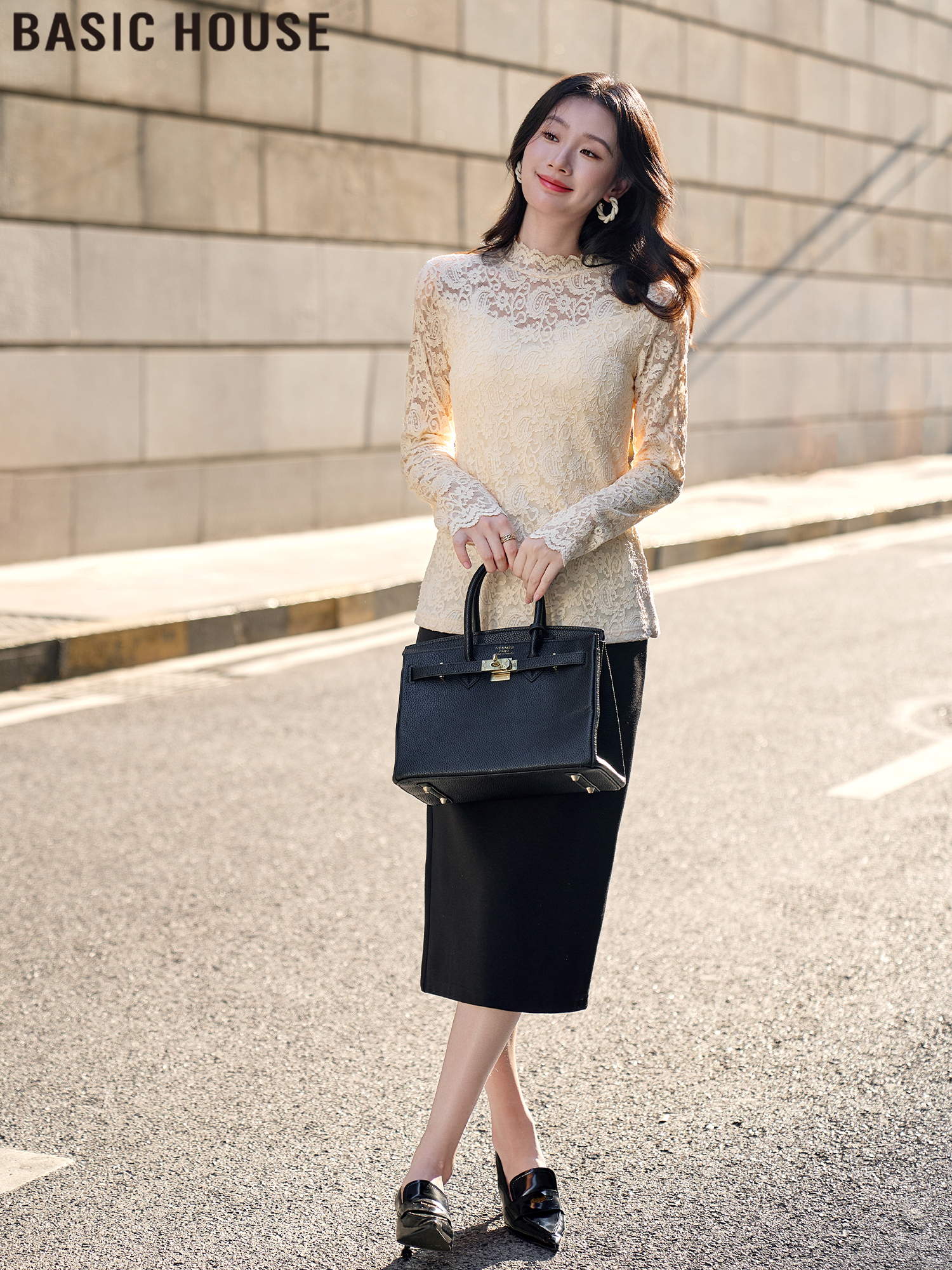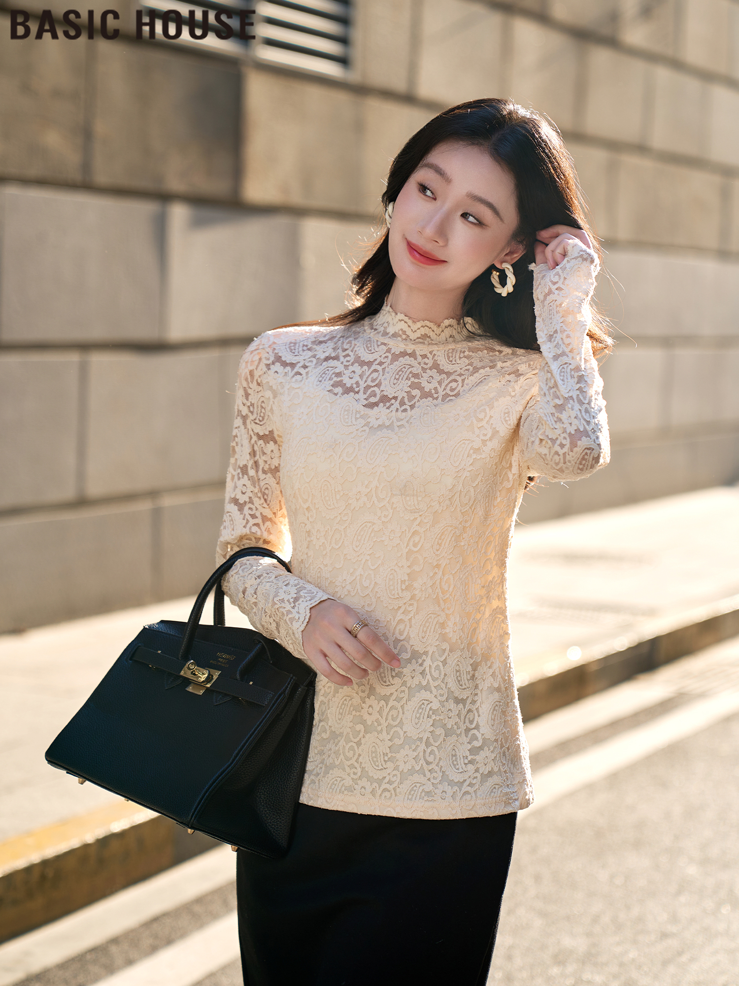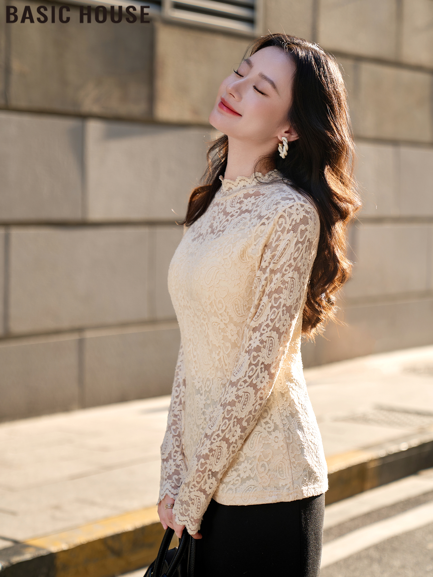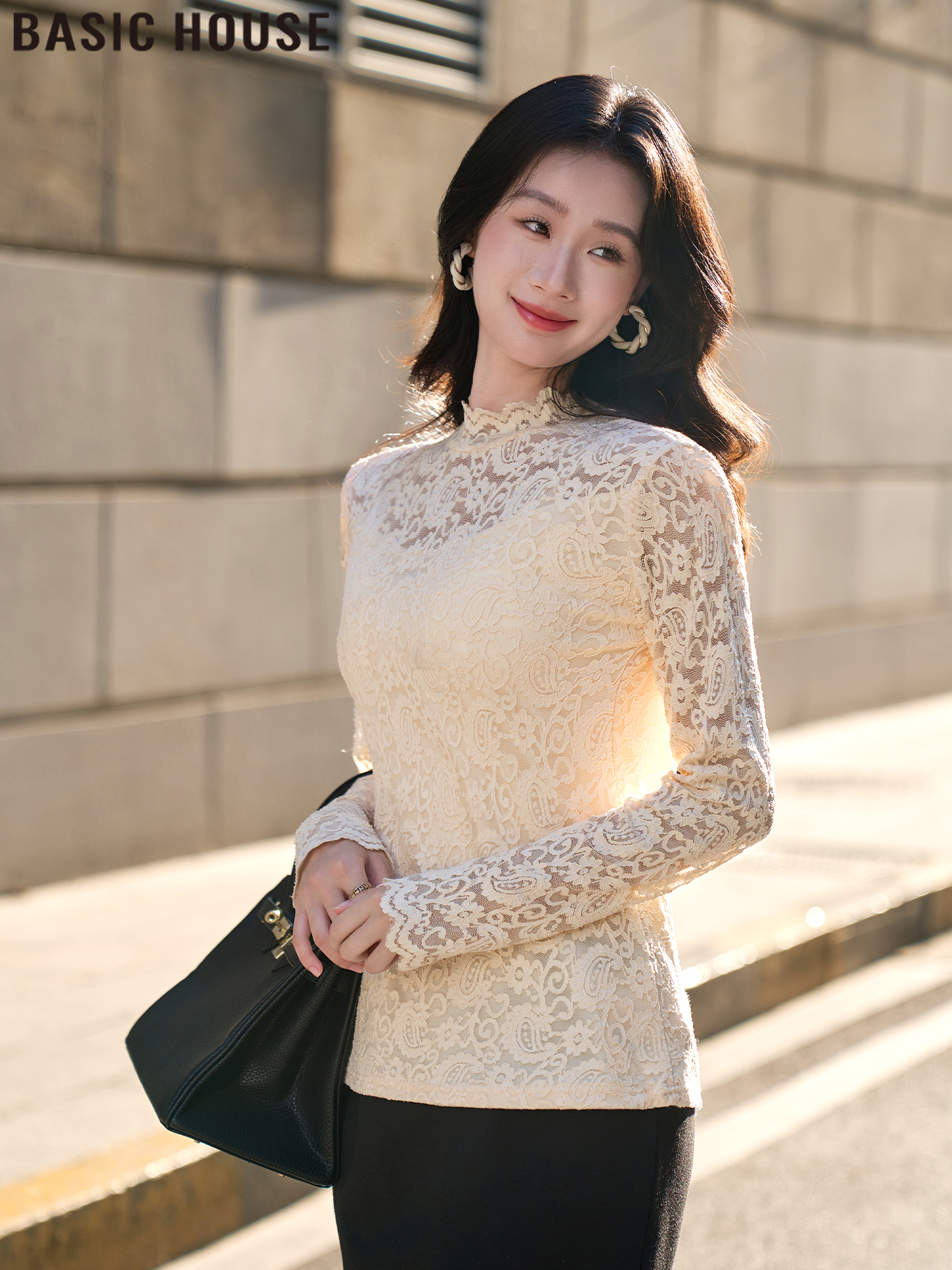 Basic House/Baijiahao Закатная атмосфера, полуворотник, кружевной топ, женский, новинка весна 2025
