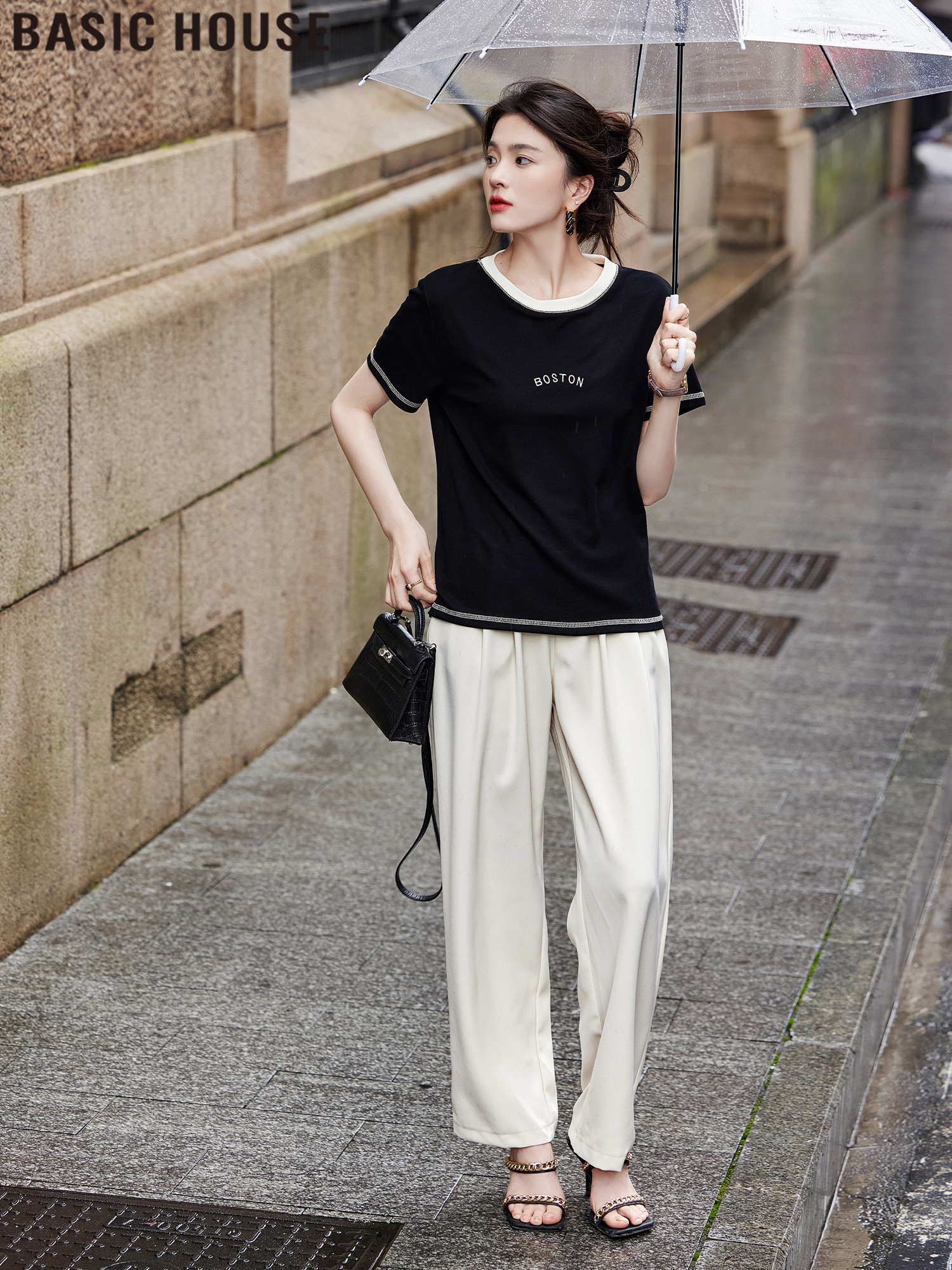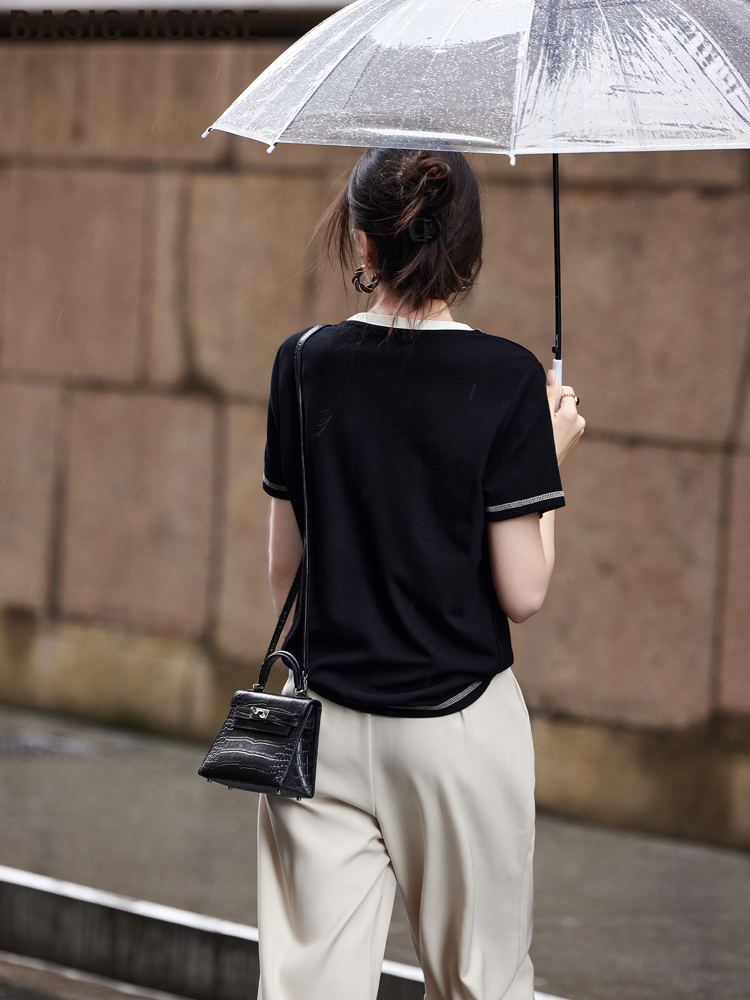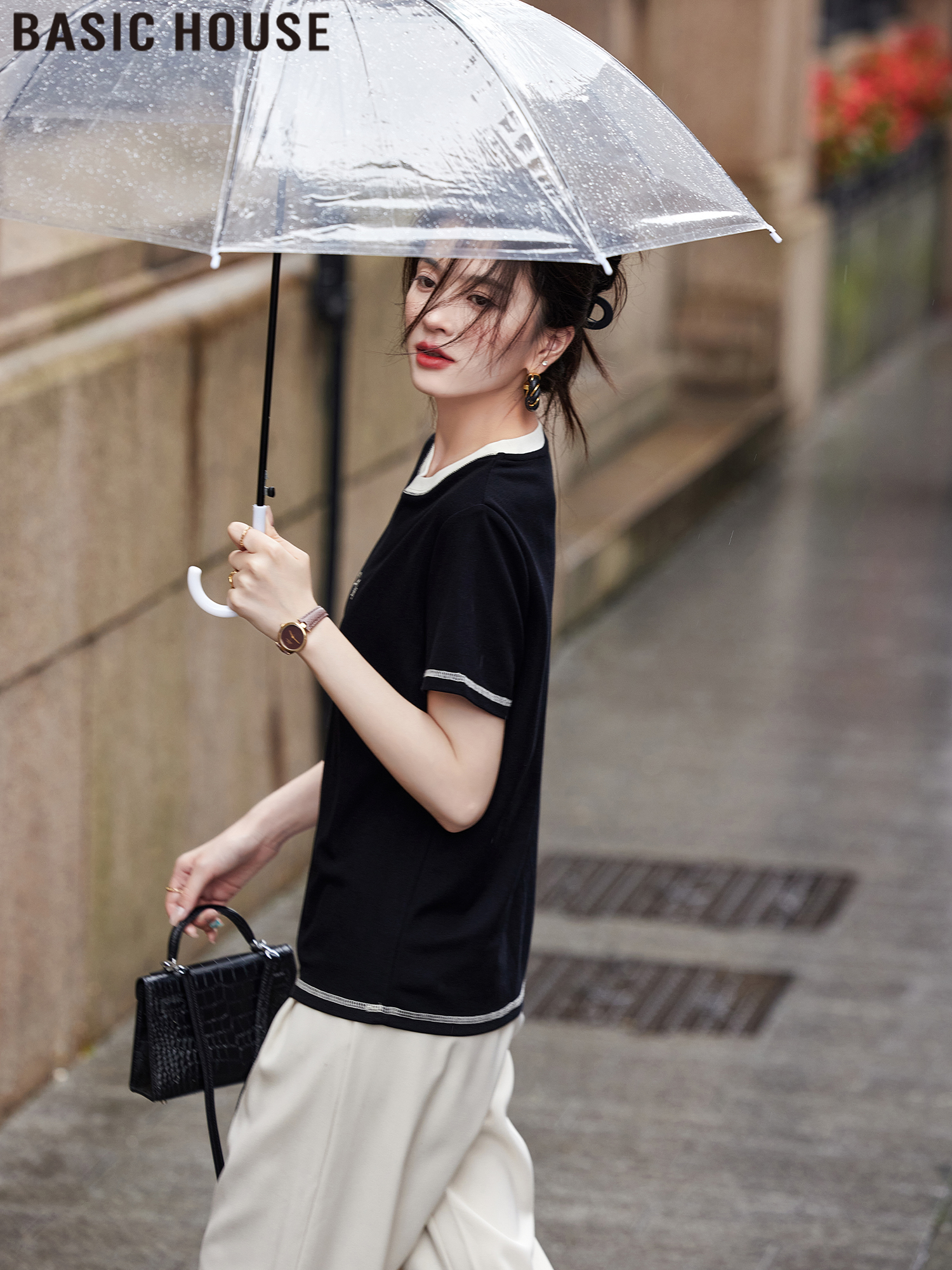 Футболка оверсайз с контрастным цветом от Baijiahao, портативный дизайн, женская летняя новинка