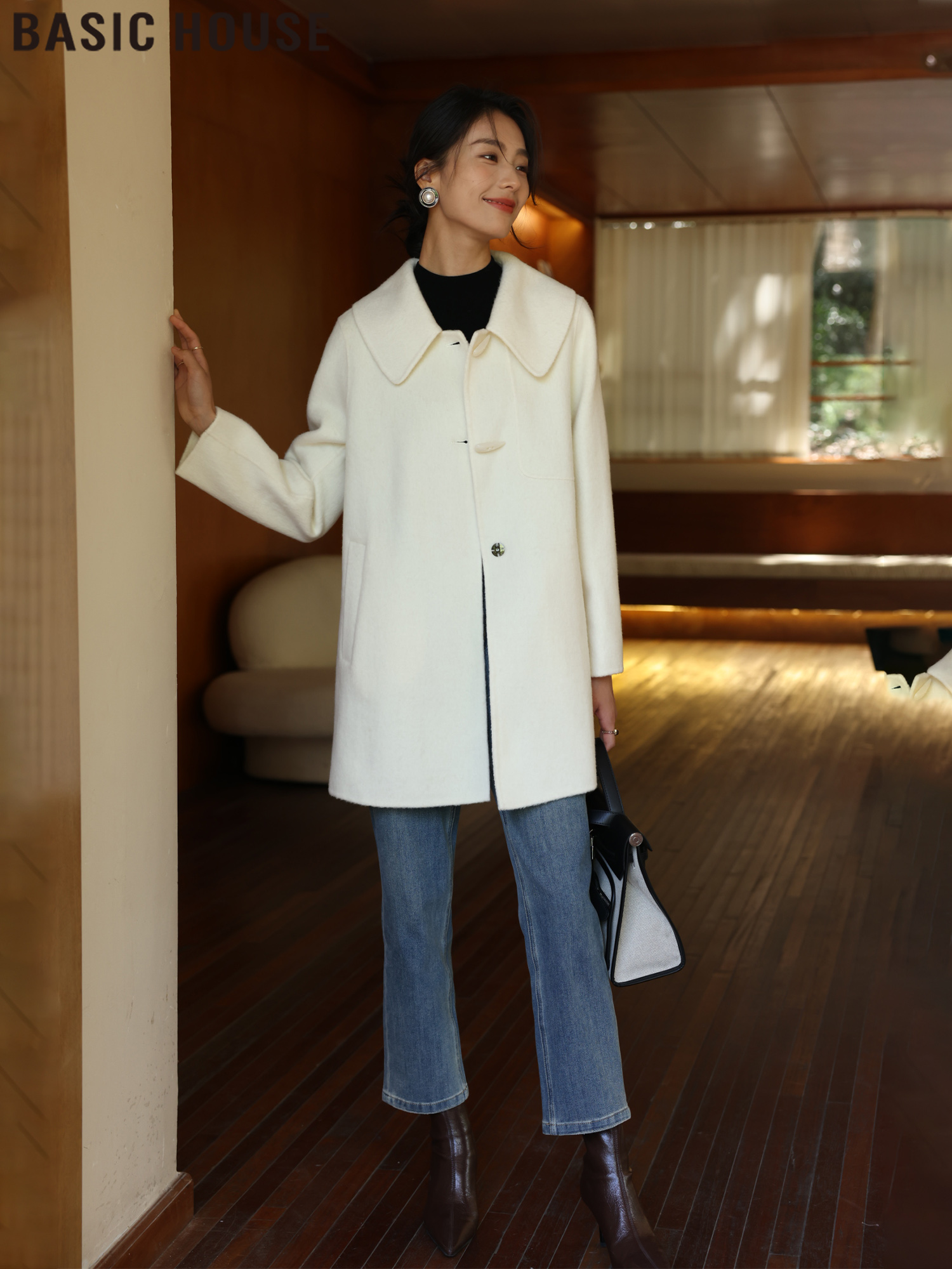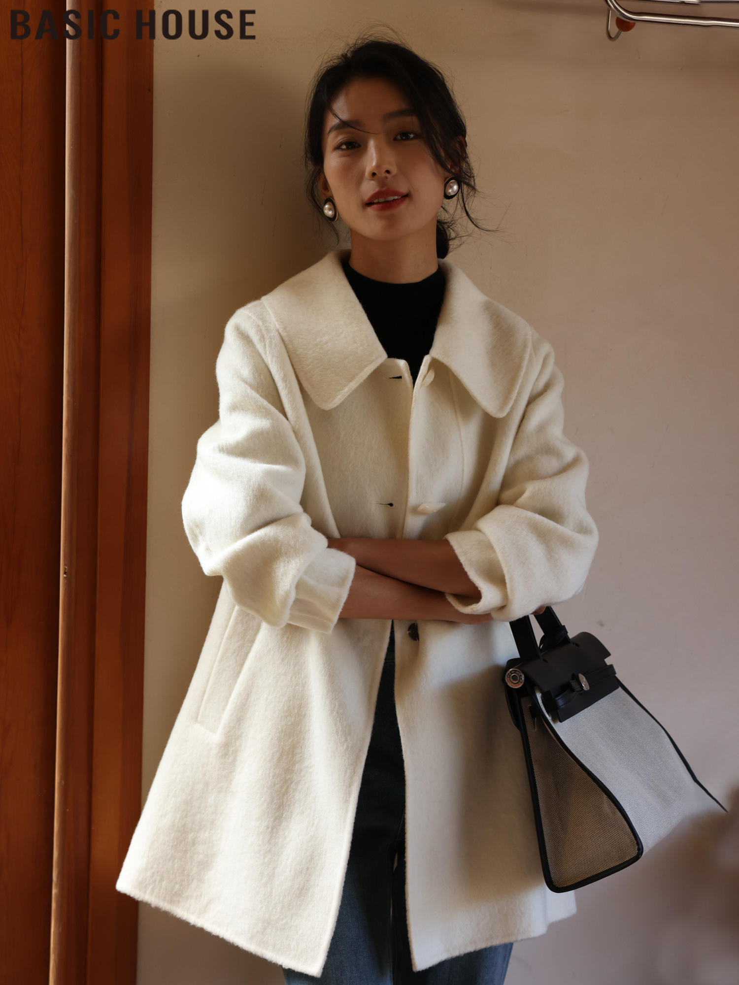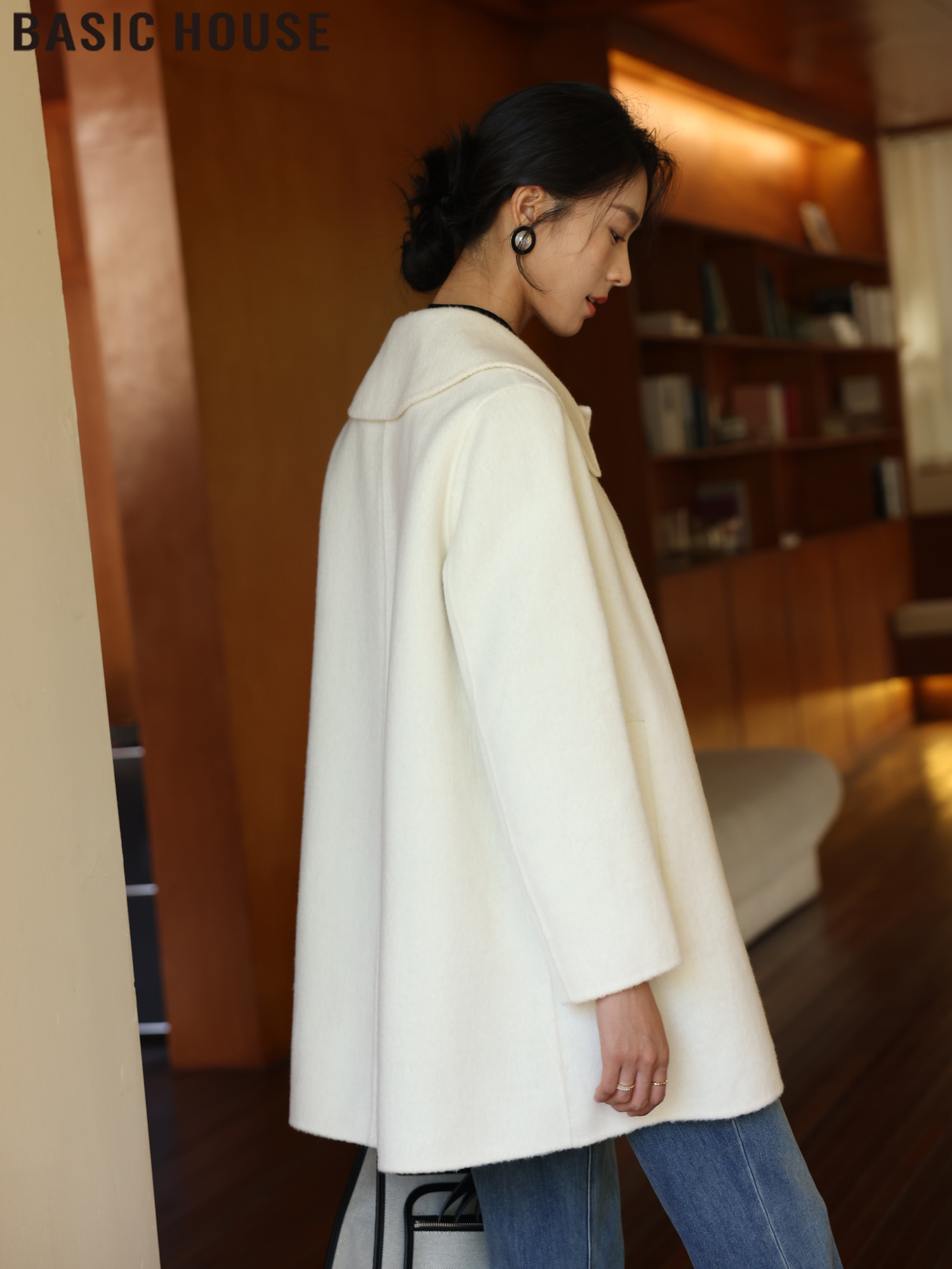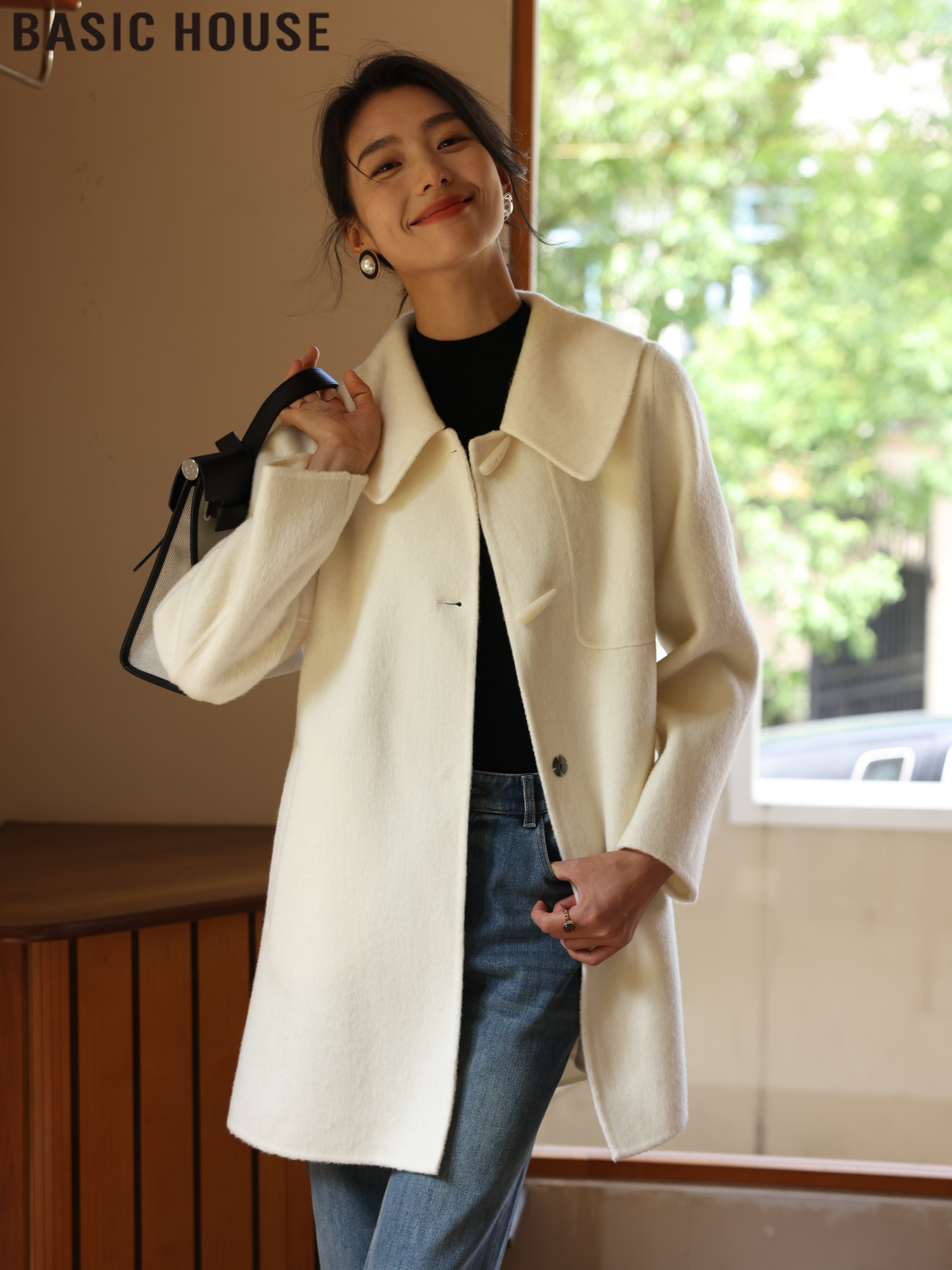 Basic House/Baijiahao Белое шерстяное пальто с короткими роговыми пуговицами, тренч, женское зимнее