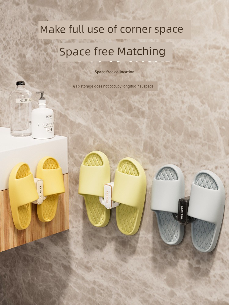 Полка для тапочек в ванную комнату, настенная, без сверления, настенная вешалка для обуви, крючок для хранения в туалете, полка
