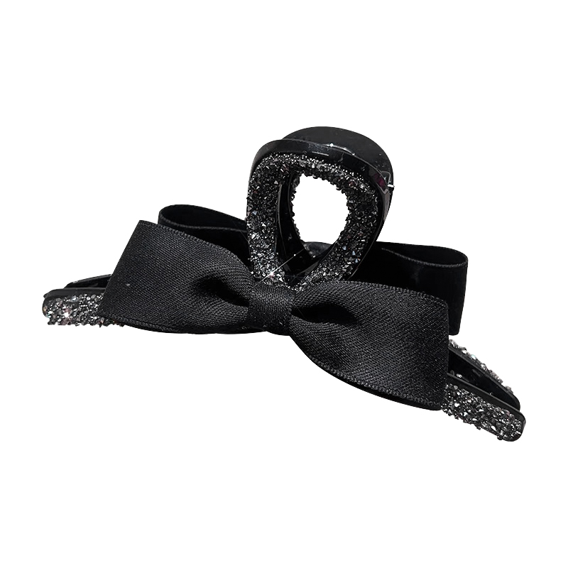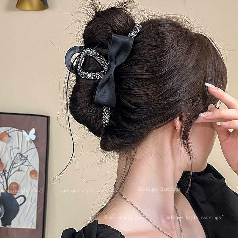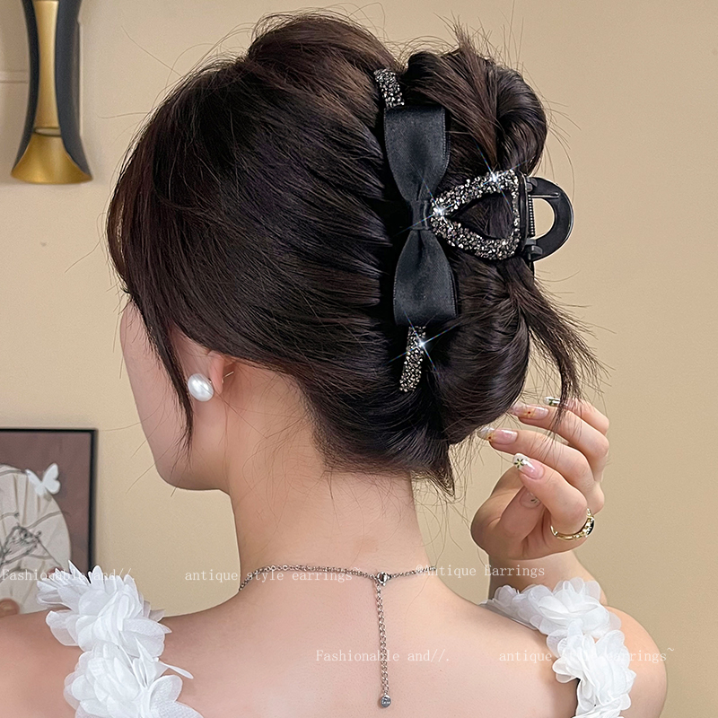 Заколка для волос с черными хрустальными бантами, большой захват, женская, модная, для затылка, классический стиль, акулий зажим, аксессуар для волос