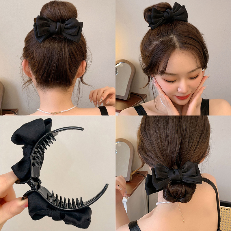 Черный модный зажим для пучка с бантом, женский аксессуар для прически на затылок, заколка для волос интернет-знаменитости, головной убор