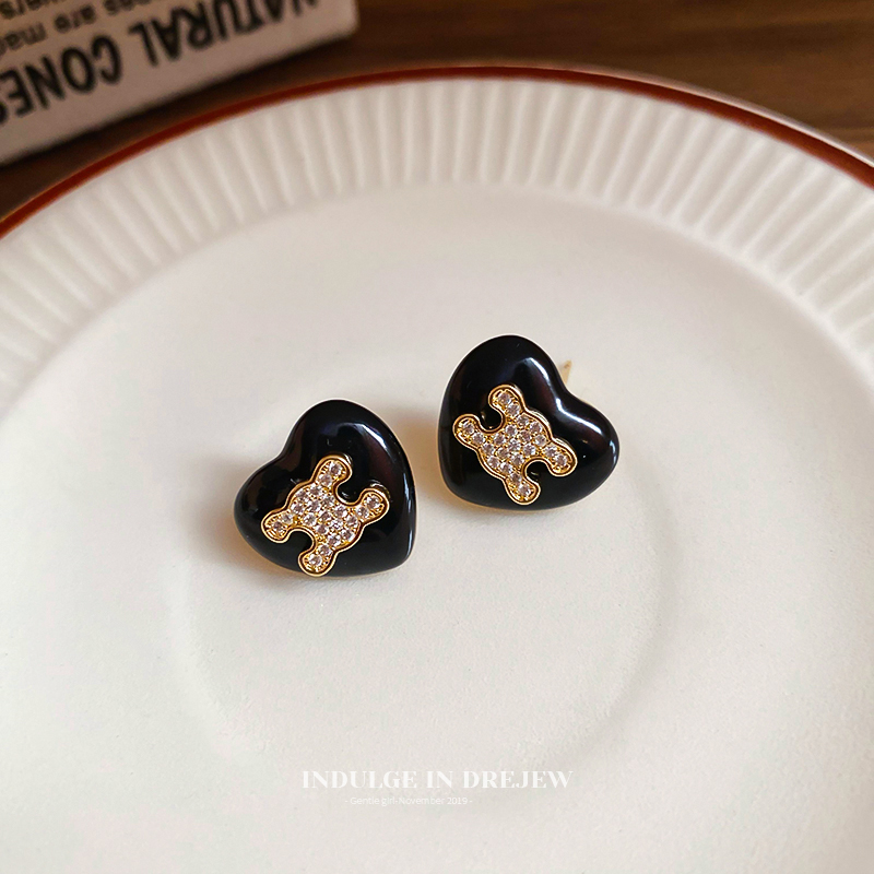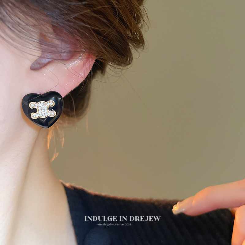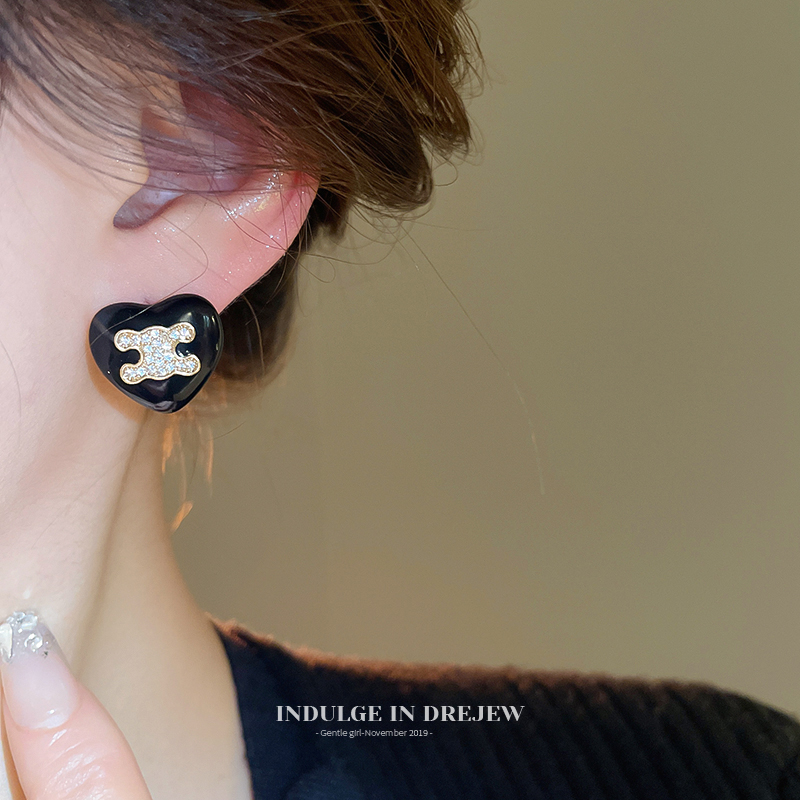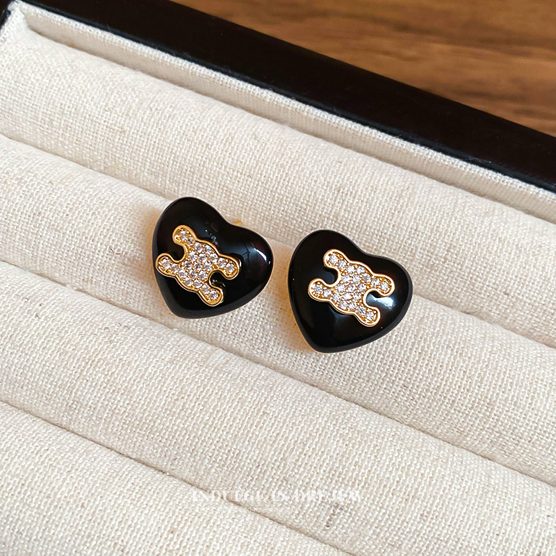 Черные серьги-гвоздики с цирконом в форме сердца 2025 Новинка Бестселлер Элегантные серьги Доступная роскошь Модные нишевые серьги для женщин