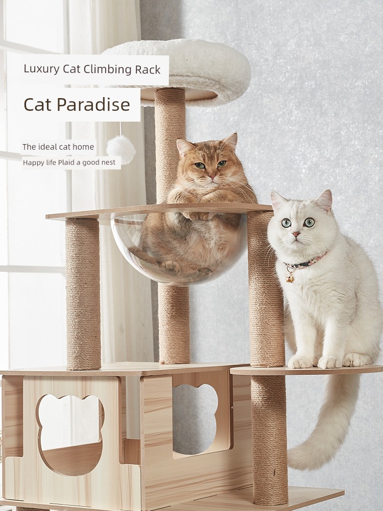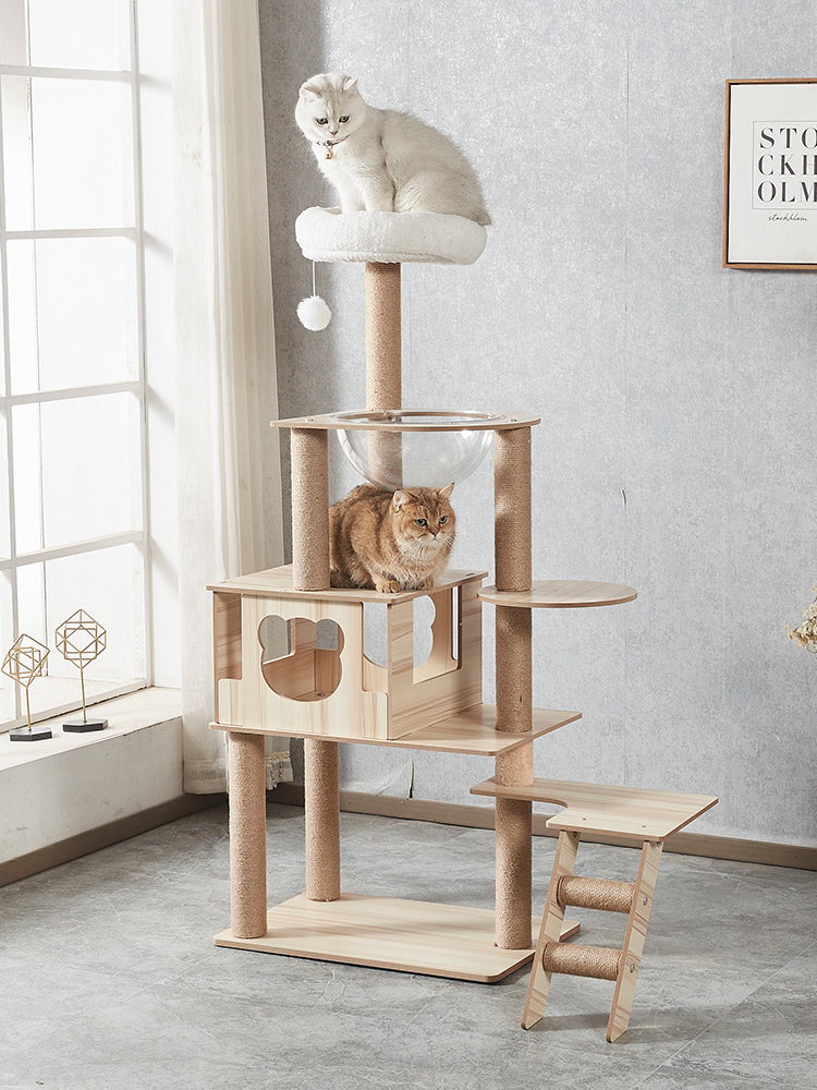 Игровой комплекс для кошек, туалет для кошек, дерево для кошек, интегрированная когтеточка, игровой комплекс для кошек, не занимает места, космическая капсула, столб для лазания из массива дерева, деревья для кошек