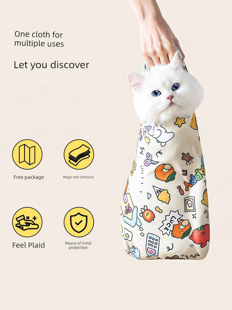 Ткань для кошек, приспособление для фиксации кошек, сумка для стрижки ногтей, антицарапающая, антиукус, самоклеящаяся, сумка для купания кошек
